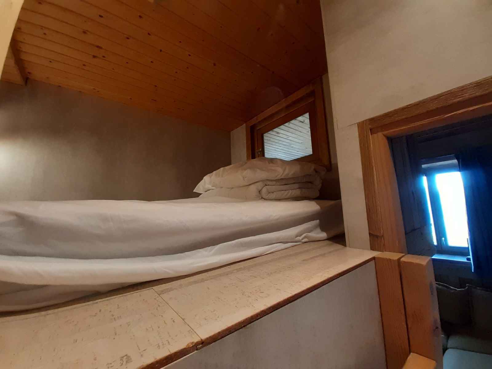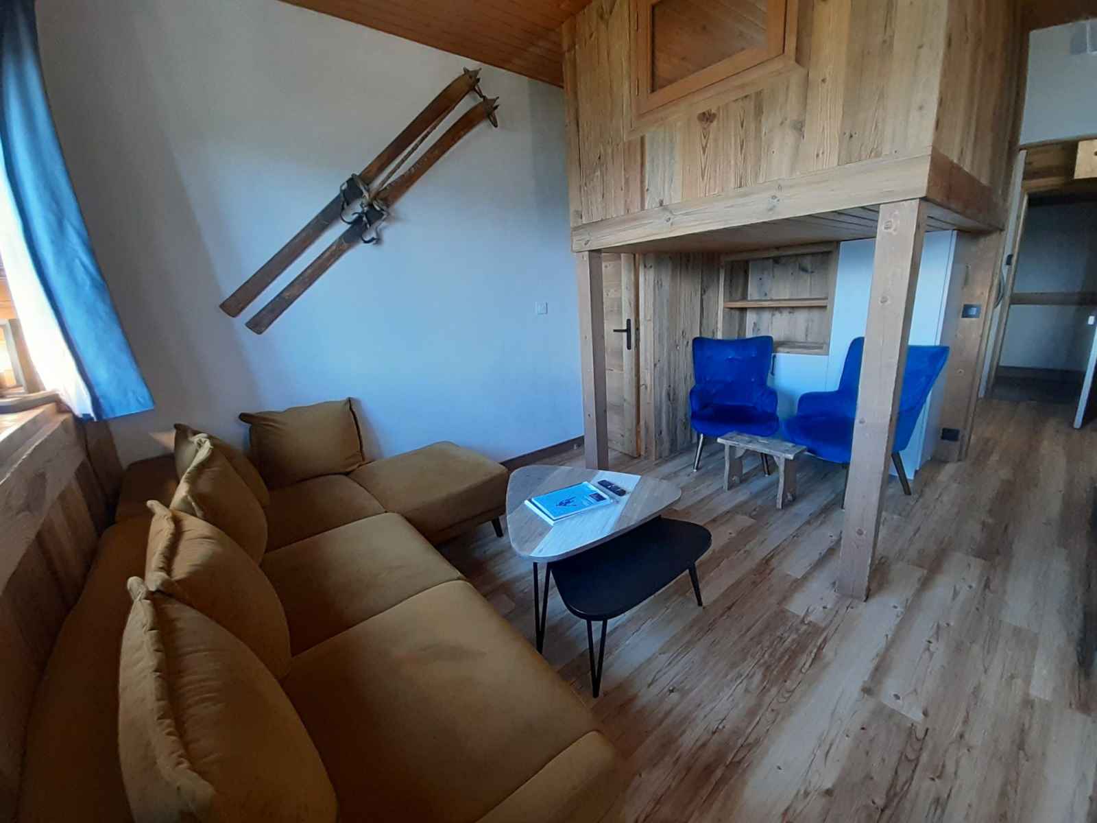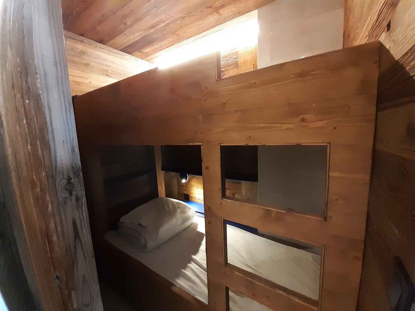 cafetière électrique, plaque induction 4 feux, réfrigérateur avec compartiment freezer et placards de rangement. Mezzanine fermée comprenant un lit double dont l'accès s'effectue depuis la pièce à vivre. " Prestations de petit déjeuner , linge de maison et ménage en cours de séjour non inclus ". COUCHAGES : - Mezzanine fermée: un lit double 140x200cm (accès par échelle). - Chambre cabine (sans fenêtre) : un lit superposé, deux couchages simples de 80x190cm Le couchage en hauteur ne convient pas à un enfant de moins de 6 ans. Salle de bains avec douche. Toilettes séparés. Casier à ski dans l'appartement et un casier privatif dans les parties communes. Un garage fermé avec 2 places de parking situées dans la résidence est à disposition des locataires - hauteur maximum 1.90m. Accès au centre station depuis le 7e étage. Connexion Wifi 4G en supplément (5Go/jour) Cet appartement n’est pas adapté aux personnes à mobilité réduite. CONDITIONS DE LOCATION : Linge de lit et toilette inclus du 01/12 au 30/04 uniquement, sinon en supplément. Ménage de fin de séjour disponibles sur demande. Caution demandée à l’arrivée. Animaux non-autorisés. ATTENTION TRAVAUX EN COURS A COTE DE LA RESIDENCE (saison estivale)