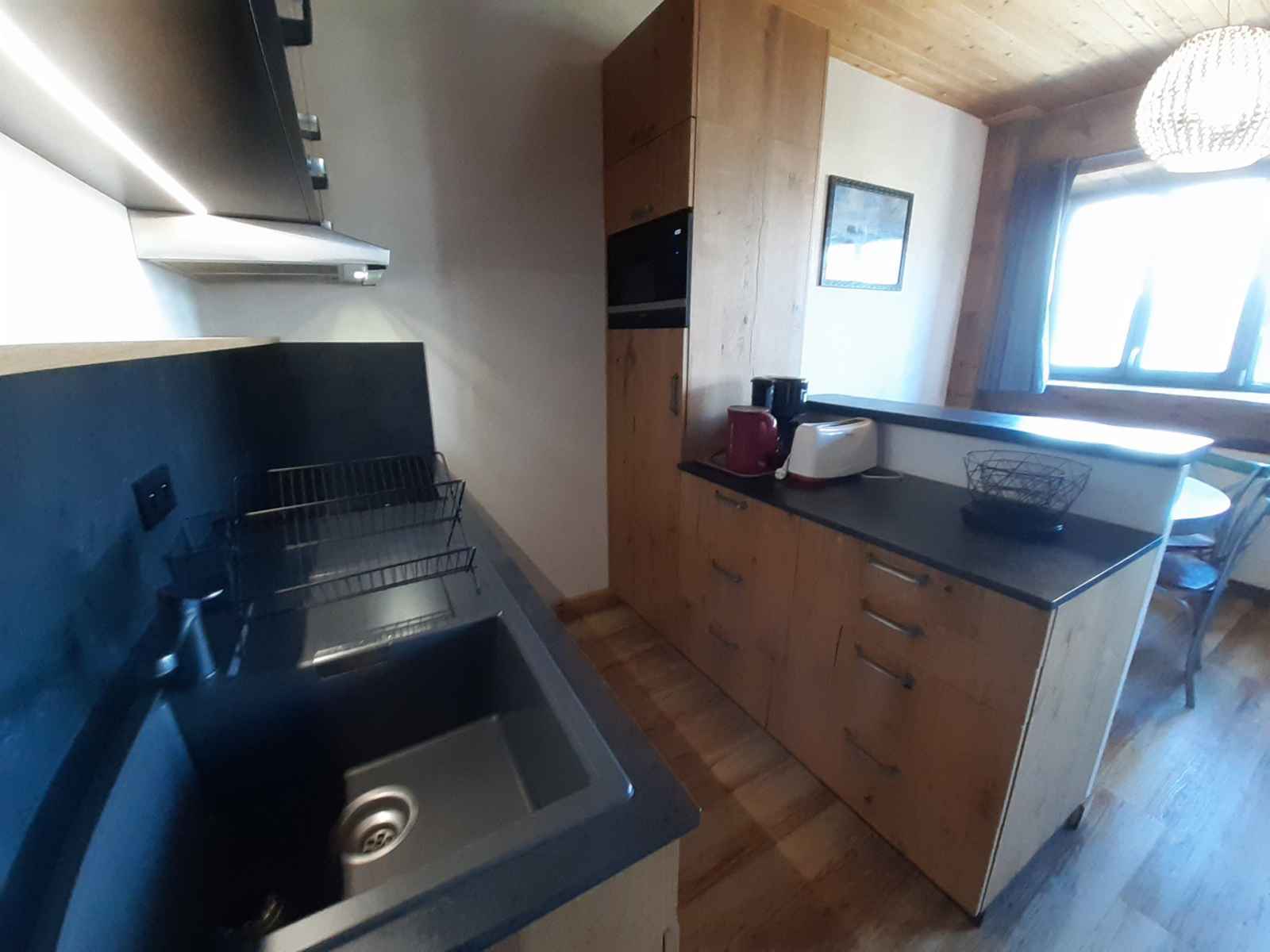 coin cuisine séparé avec micro-ondes, four, lave-vaisselle,