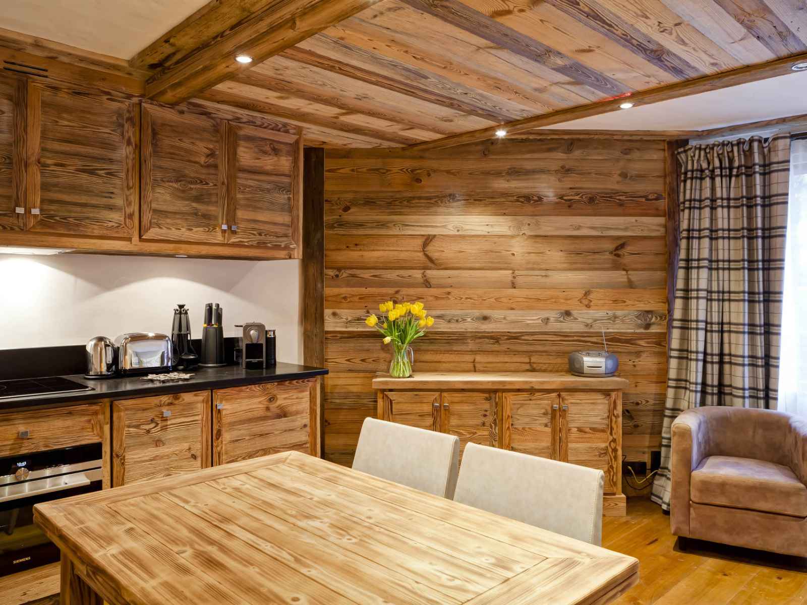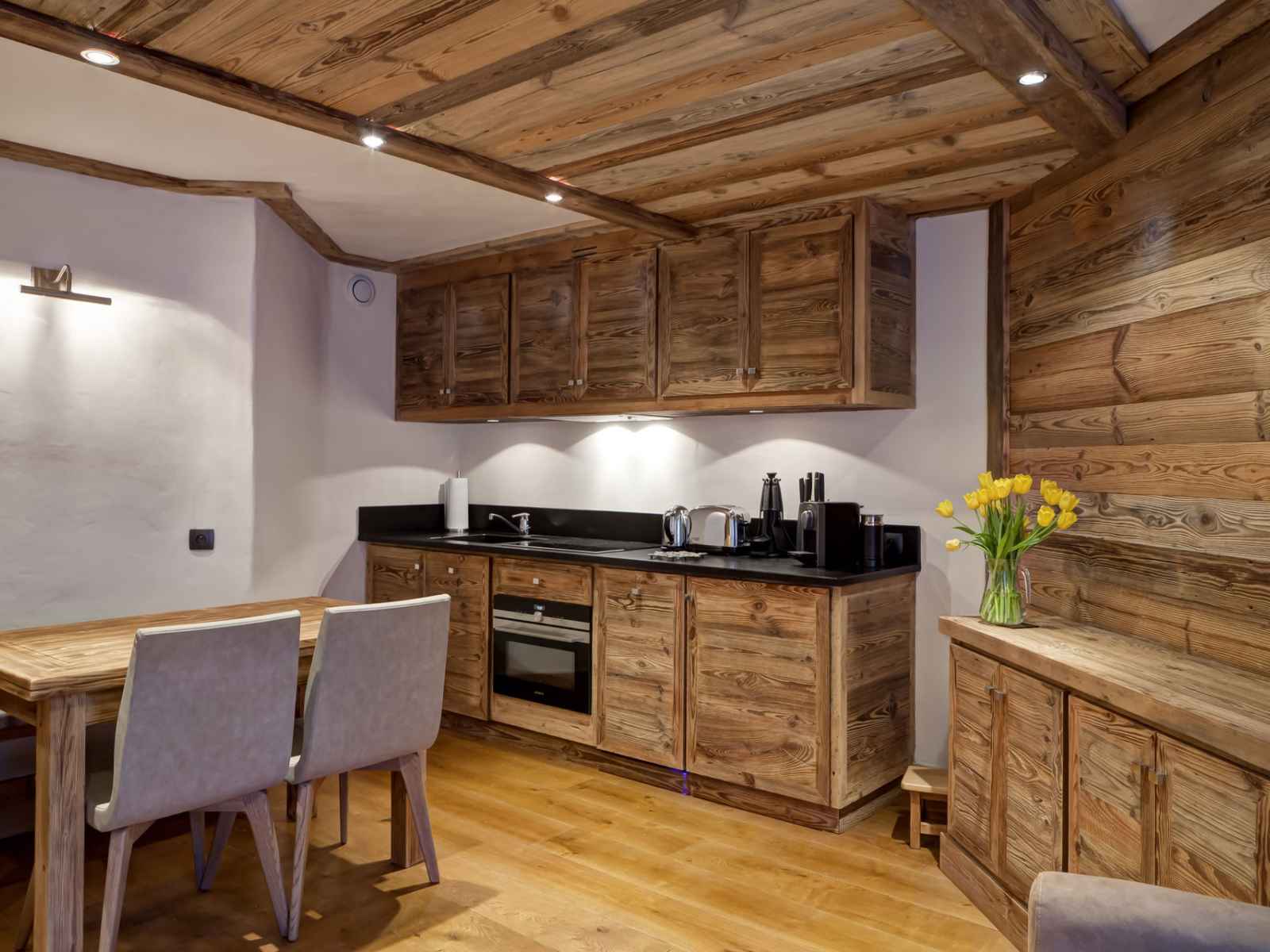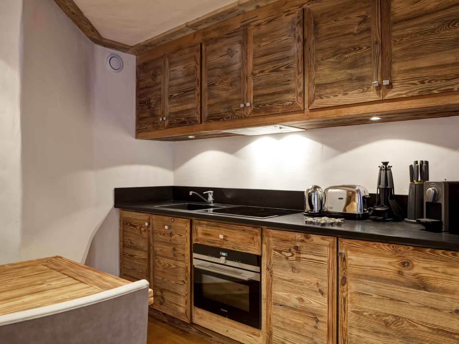 coin cuisine avec plaques à induction, combiné four/micro-ondes, hotte,