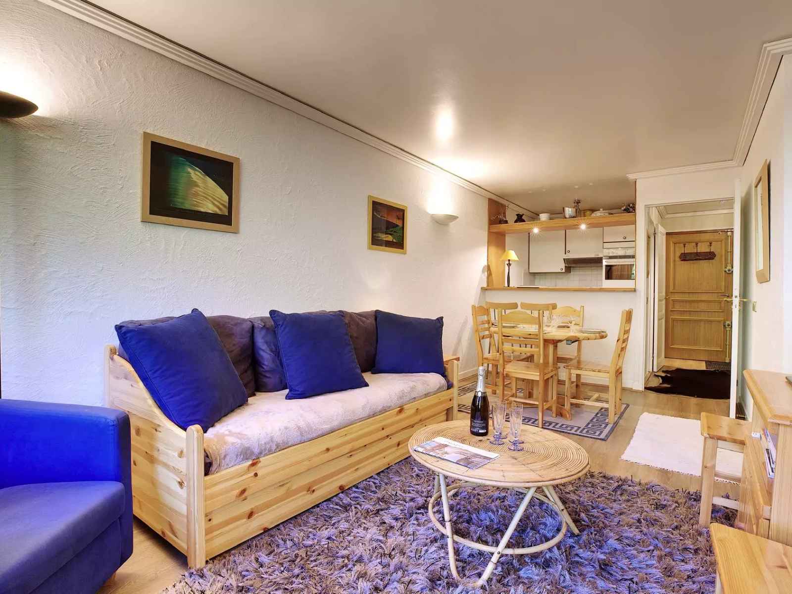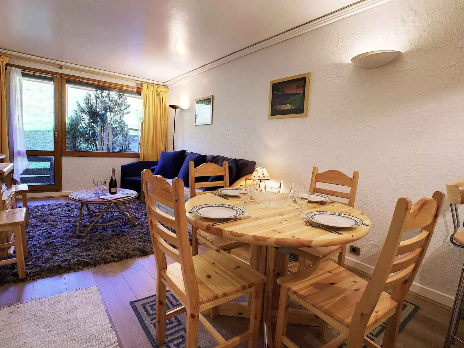 - un séjour avec coin repas et balcon en rez-de neige exposé sud avec vue pistes