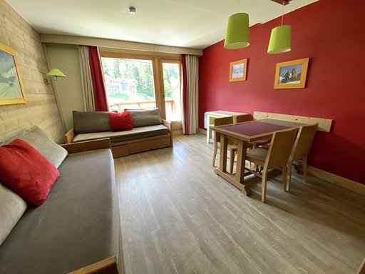 mini four, micro-ondes, cafetière électrique (SENSEO) et à filtre, appareil à raclette réfrigérateur avec freezer, bouilloire et aspirateur. COUCHAGES : Chambre : 2 lits simples. Séjour : 2 canapés gigognes 3 couchages. Salle de bains avec baignoire (sèche-cheveux) Toilettes séparées. Casier à skis privatif. Place de parking couvert inclus. Connexion WIFI 4G en supplément. CONDITIONS DE LOCATION : Linge de lit inclus du 15/12 au 30/04 uniquement, sinon en supplément. Linge de toilette et ménage de fin de séjour non inclus et sur demande. Caution demandée à l'arrivée. Supplément pour animal de compagnie 25€/semaine. Cet appartement n’est pas adapté aux personnes à mobilité réduite.