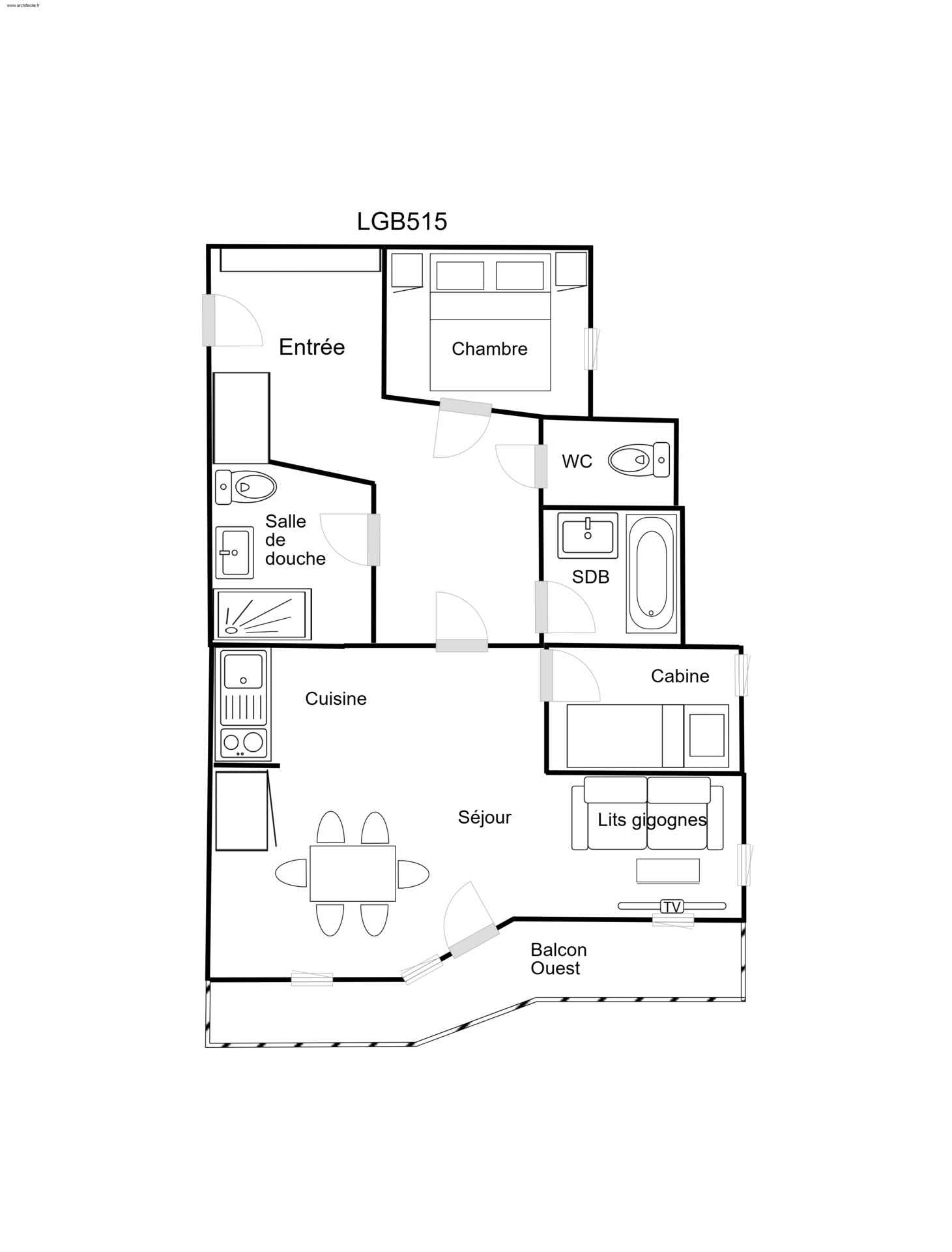cabine (avec fenêtre donnant sur la pente) : 1 ensemble de lits superposés
