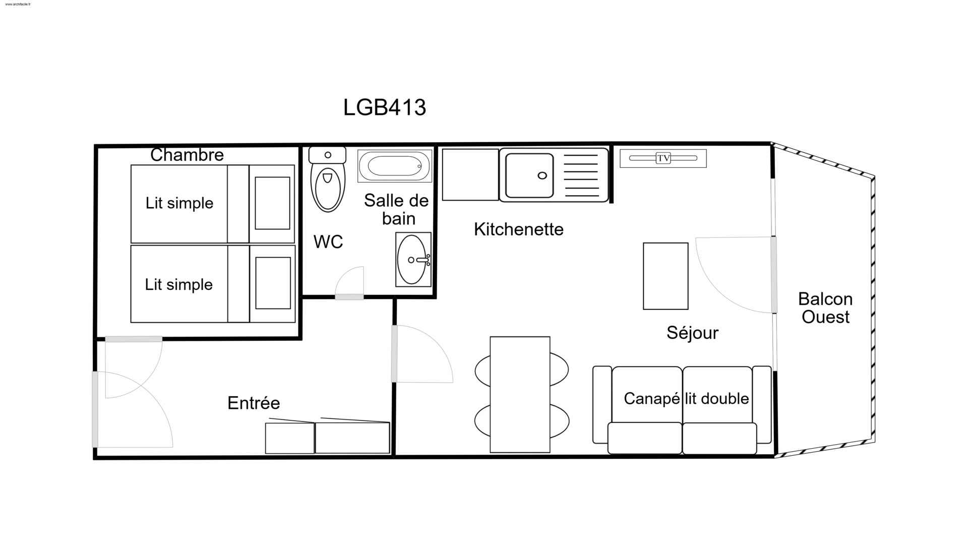 2 pièces, 4 personnes, 25m², balcon ouest, 2ème étage
