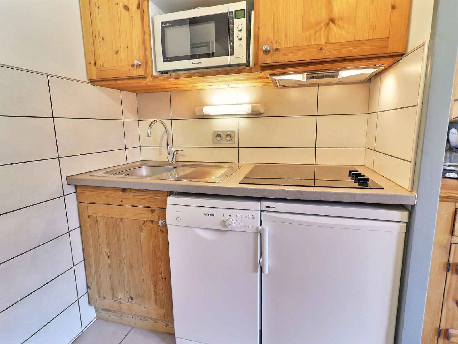 kitchenette : four combine micro-ondes, frigidaire, 4 plaques vitrocéramiques, lave-vaisselle, hotte, cafetière