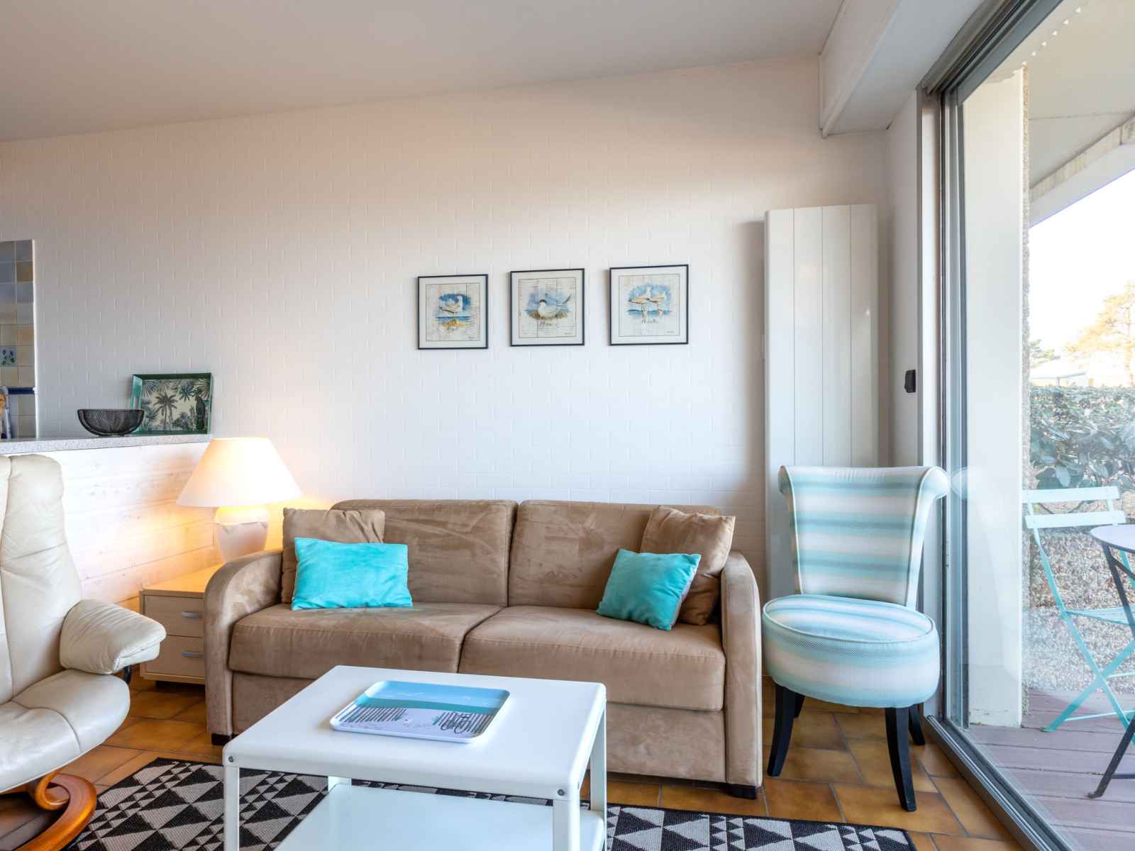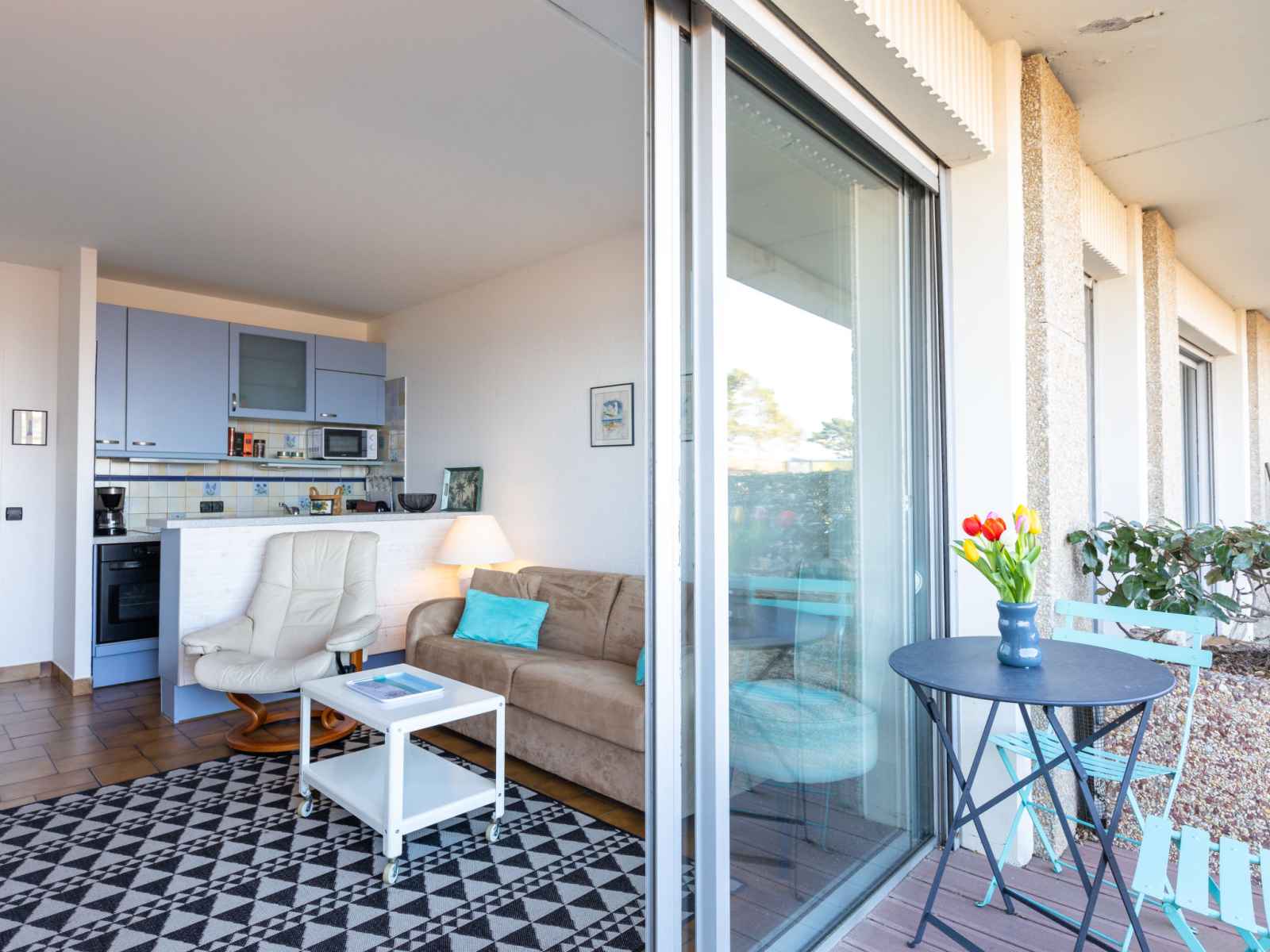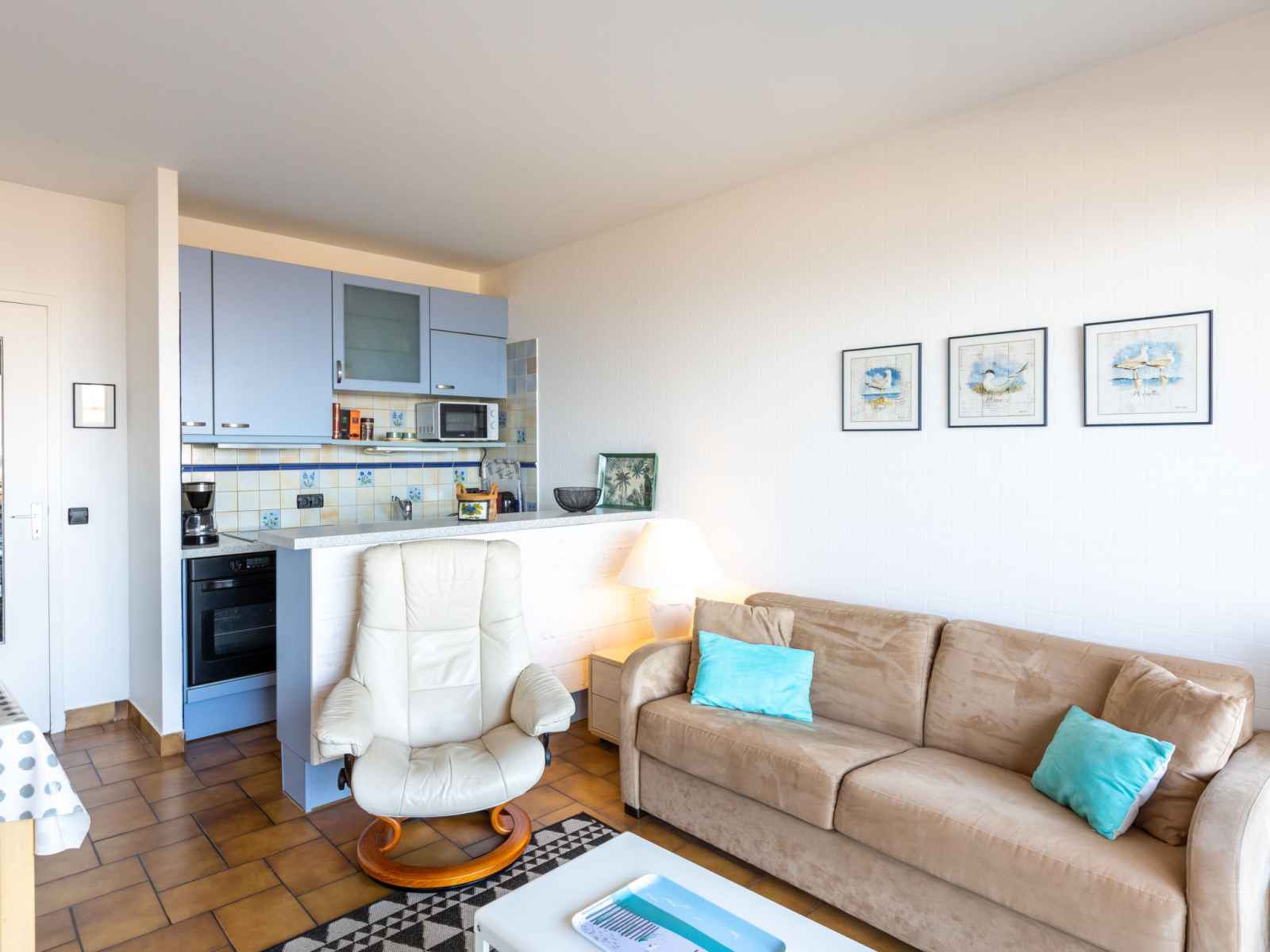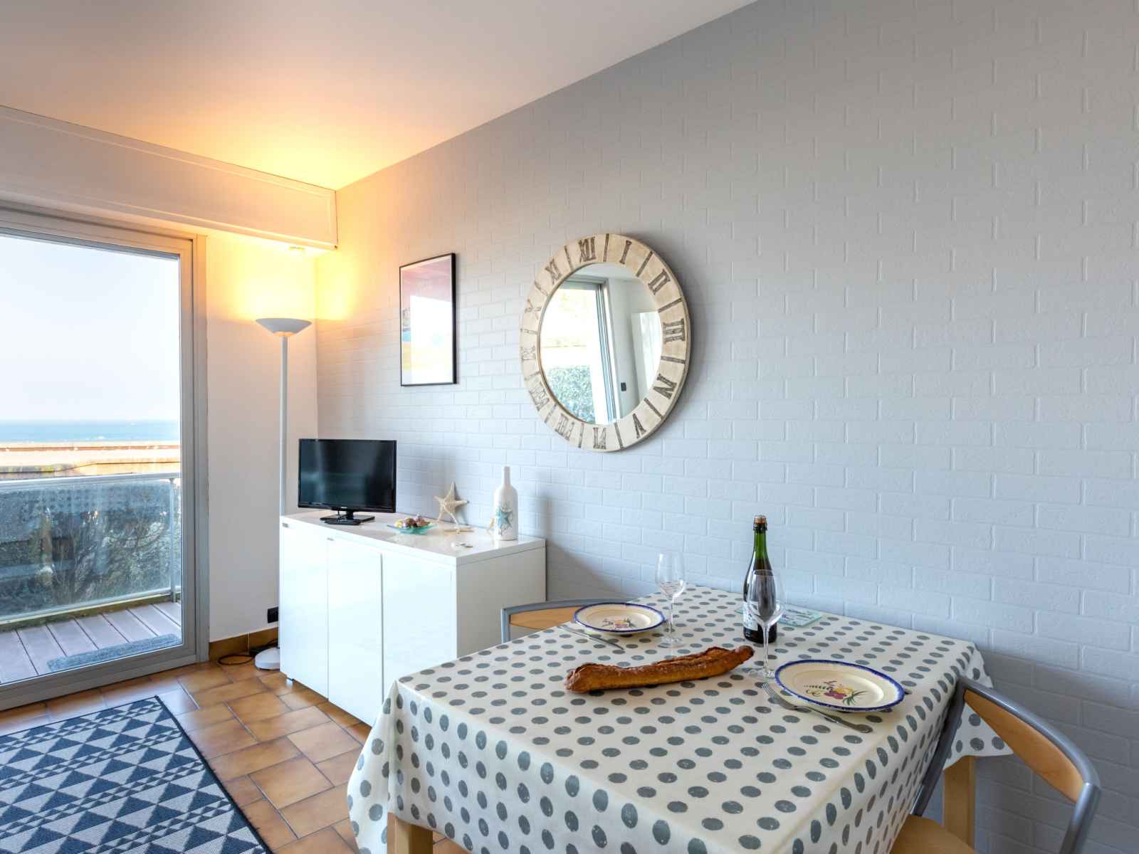 Apt 2 pièces 38 m2, au rez-de-chaussée. aménagement confortable et agréable: séjour/salle à manger avec tv (écran plat). sortie sur la terrasse. 1 chambre avec 1 grand-lit (160 cm, longueur 200 cm). sortie sur la terrasse. cuisine ouverte (2 plaques de cuisson, four, lave-vaisselle, grille-pain, bouilloire électrique, micro-ondes,