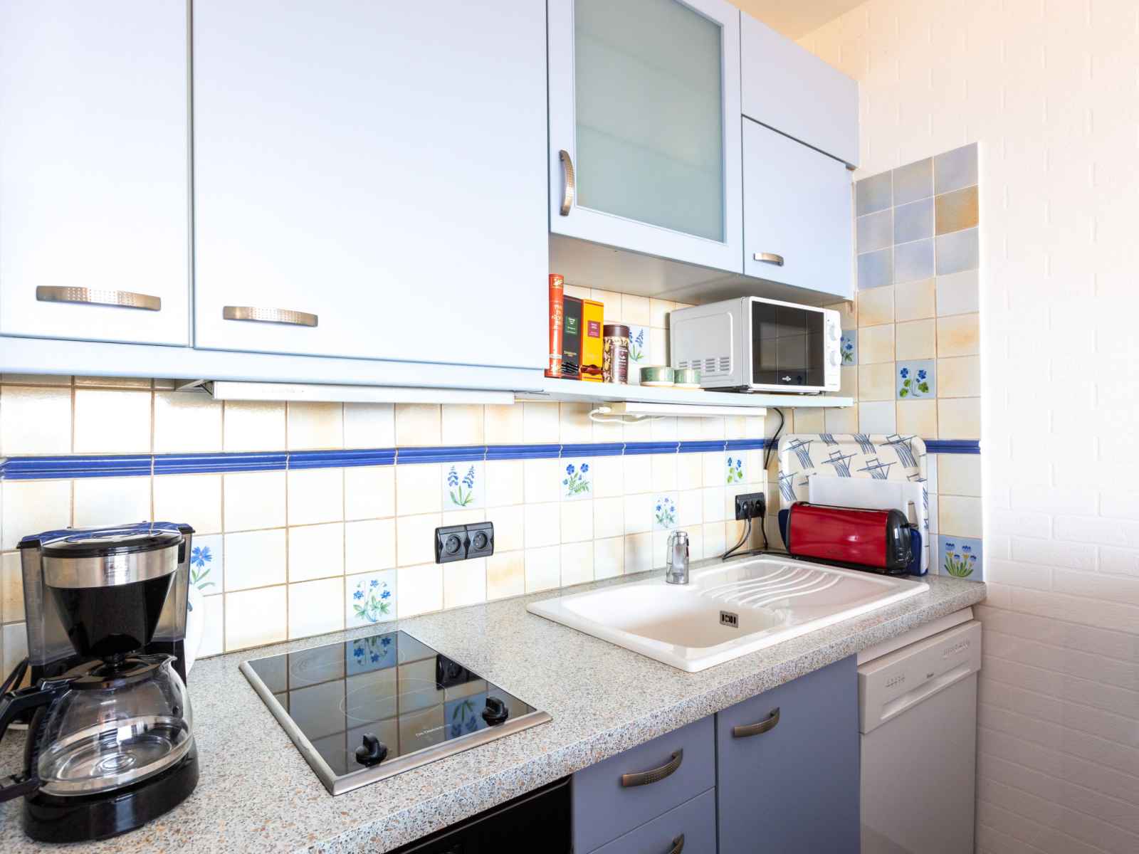 cafetière électrique). Salle de bains. Chauffage électrique. Petite terrasse. Meubles de terrasse. Très belle vue sur la mer. A disposition: lave-linge, sèche-cheveux. Internet (Connexion WIFI, gratuit). Place de parking (couvert), hauteur 210 cm. Veuillez noter: logement non-fumeur. Détecteur de fumée.