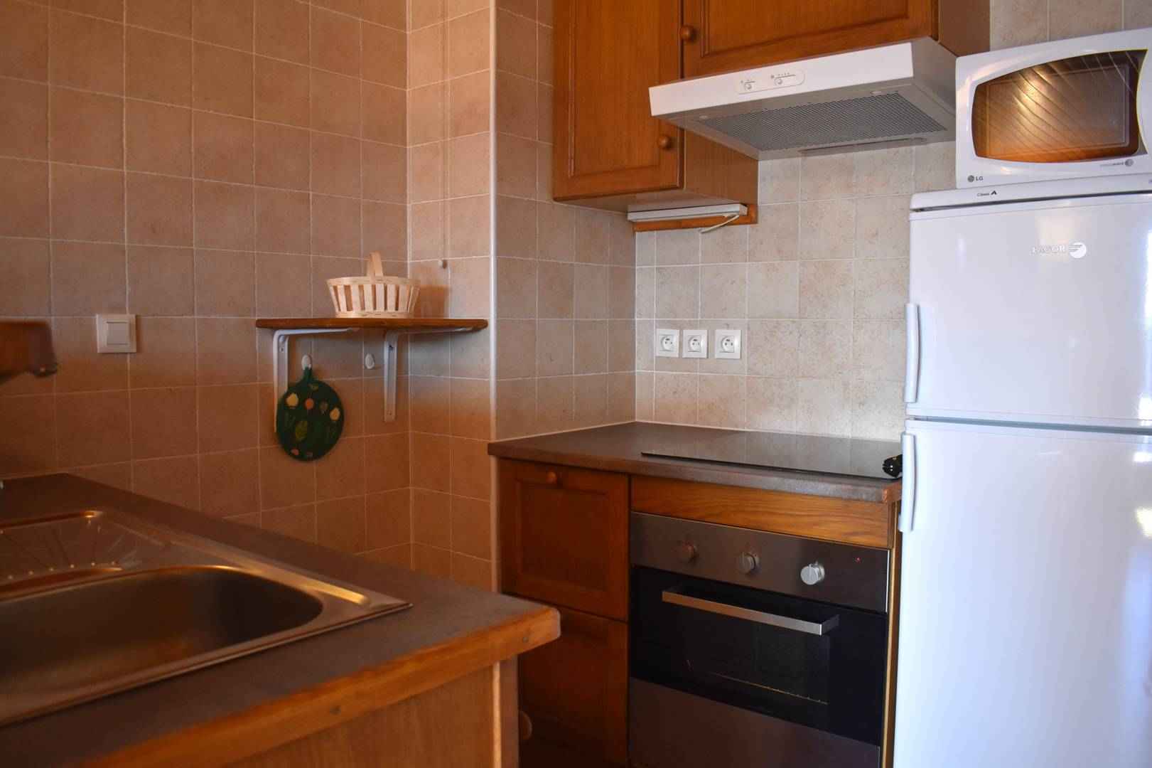 Cuisine ouverte équipée : Frigo, micro-ondes, four, lave-vaisselle, plaques vitrocéramique