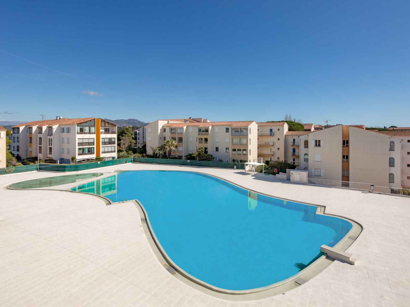 Résidence "le lagon bleu". À 600 m du centre de fréjus, à 3 km de la mer, à 3 km de la plage. en commun: piscine cloturée (25 x 45 m, profondeur 80 - 280 cm, disponibilité saisonnière: 15.mai. - 30.sep.). bassin pour les enfants, tennis (2 x dur, 1 x terre battue), espace de jeux pour les enfants. magasins, magasin d'alimentation 600 m,