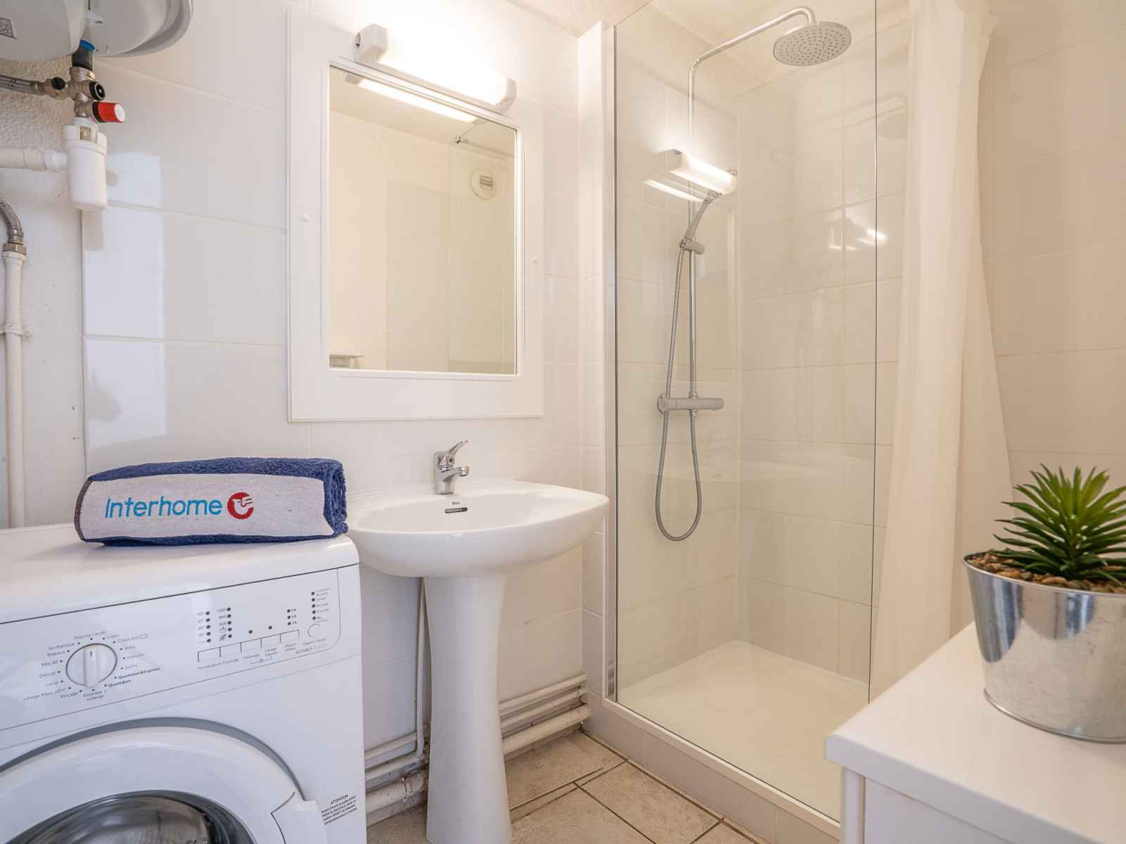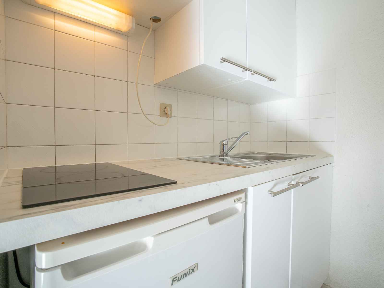 grille-pain, bouilloire électrique, micro-ondes, cafetière électrique). Douche, WC séparé. Chauffage électrique. Terrasse 9 m2. Meubles de terrasse. A disposition: lave-linge, fer à repasser. Internet (Connexion WIFI, en sus). Garage No 22, hauteur 188 cm, largeur 218 cm. Veuillez noter: logement côté rue. Détecteur de fumée. Au lieu d'une chambre fermée, des espaces de couchage sont situés dans une zone ouverte (galerie, alcôve...).
