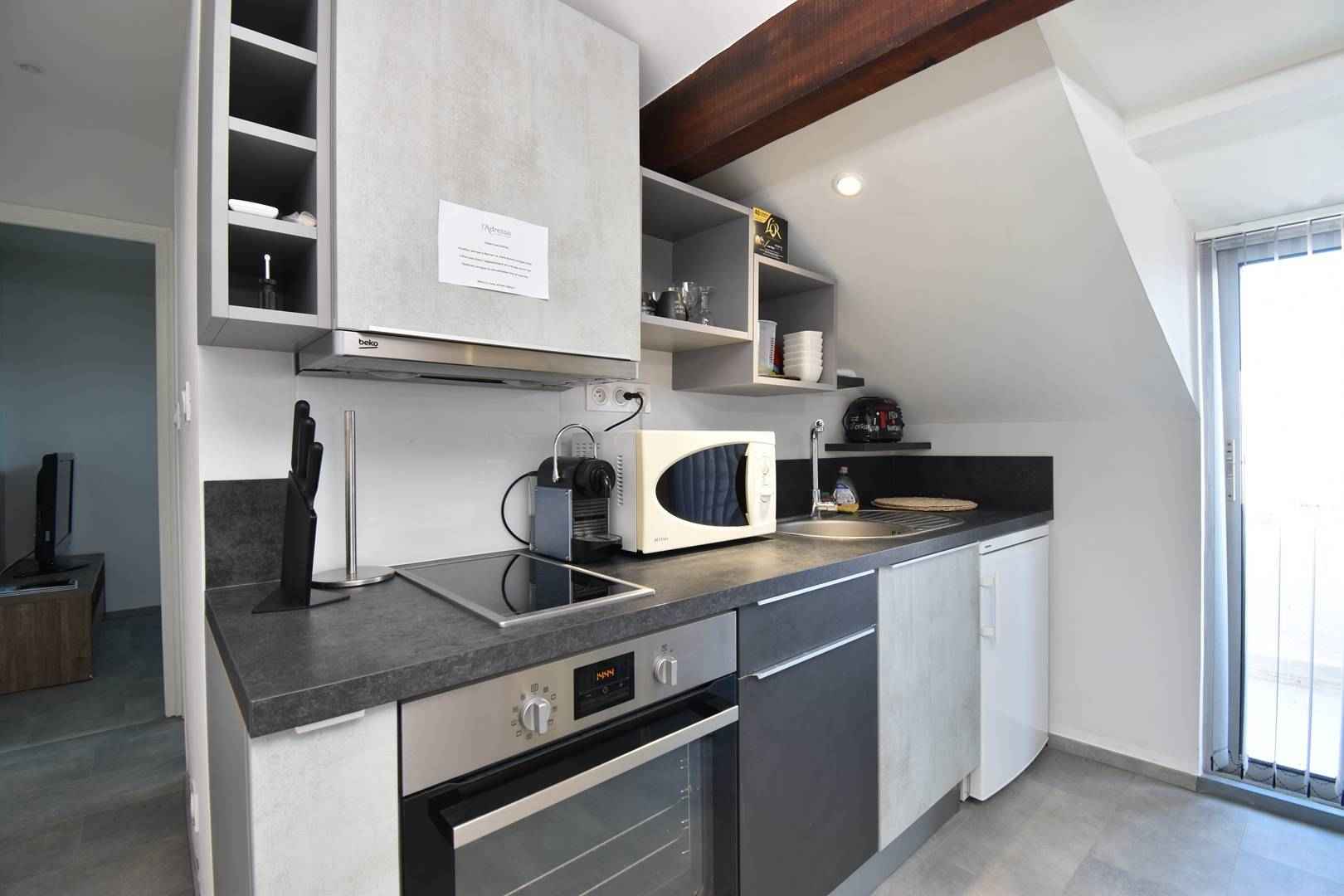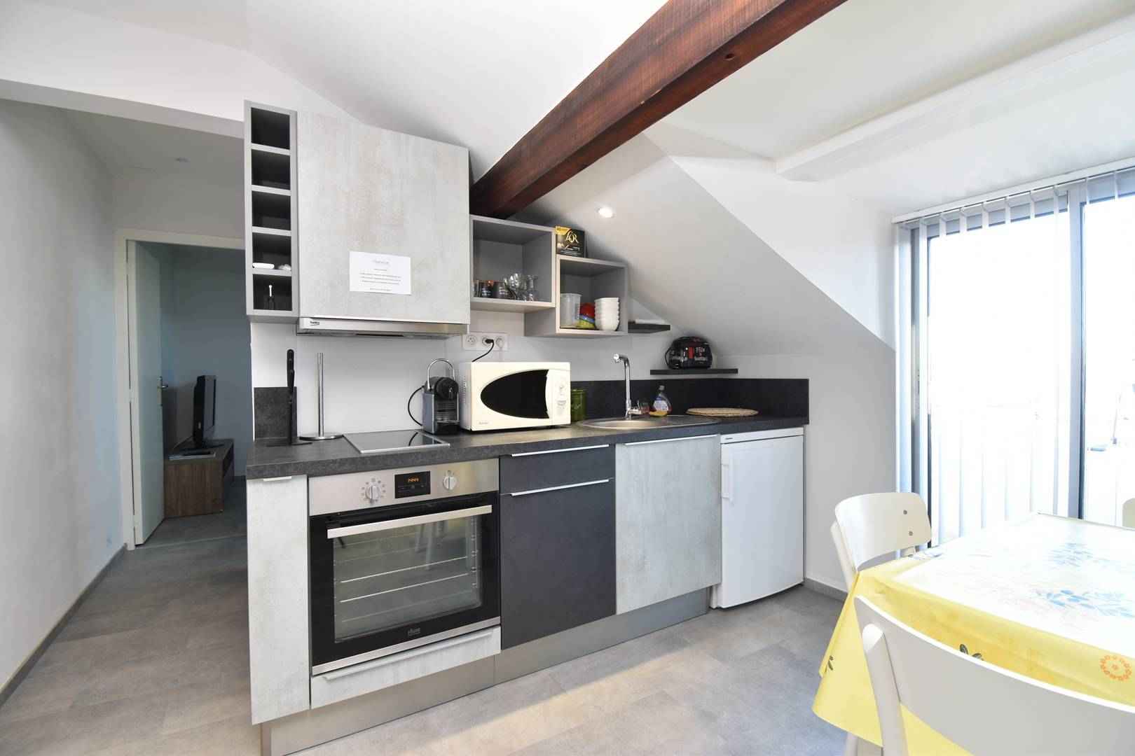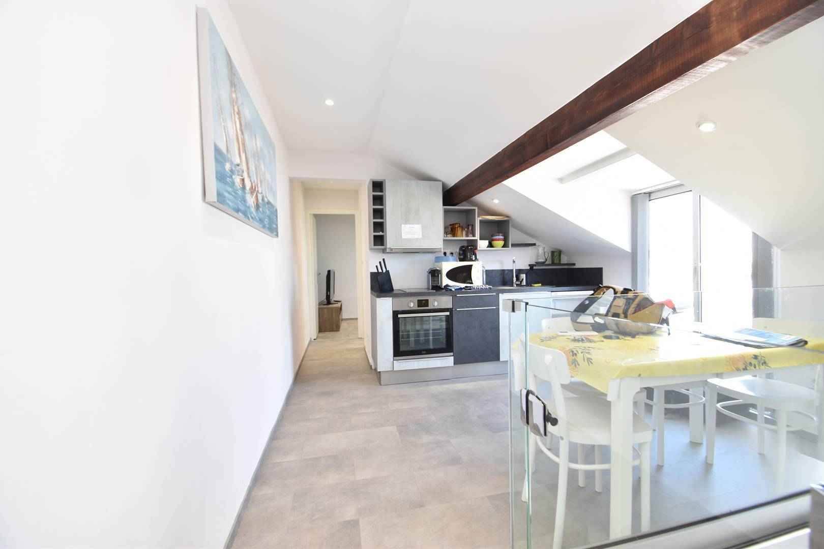 ce superbe appartement entièrement rénové de 24m², vous offre une cuisine américaine toute équipée, une chambre avec lits doubles et lit superposé, une salle d eau avec douche à l italienne. ce logement permet d accueillir 4 couchages grâce