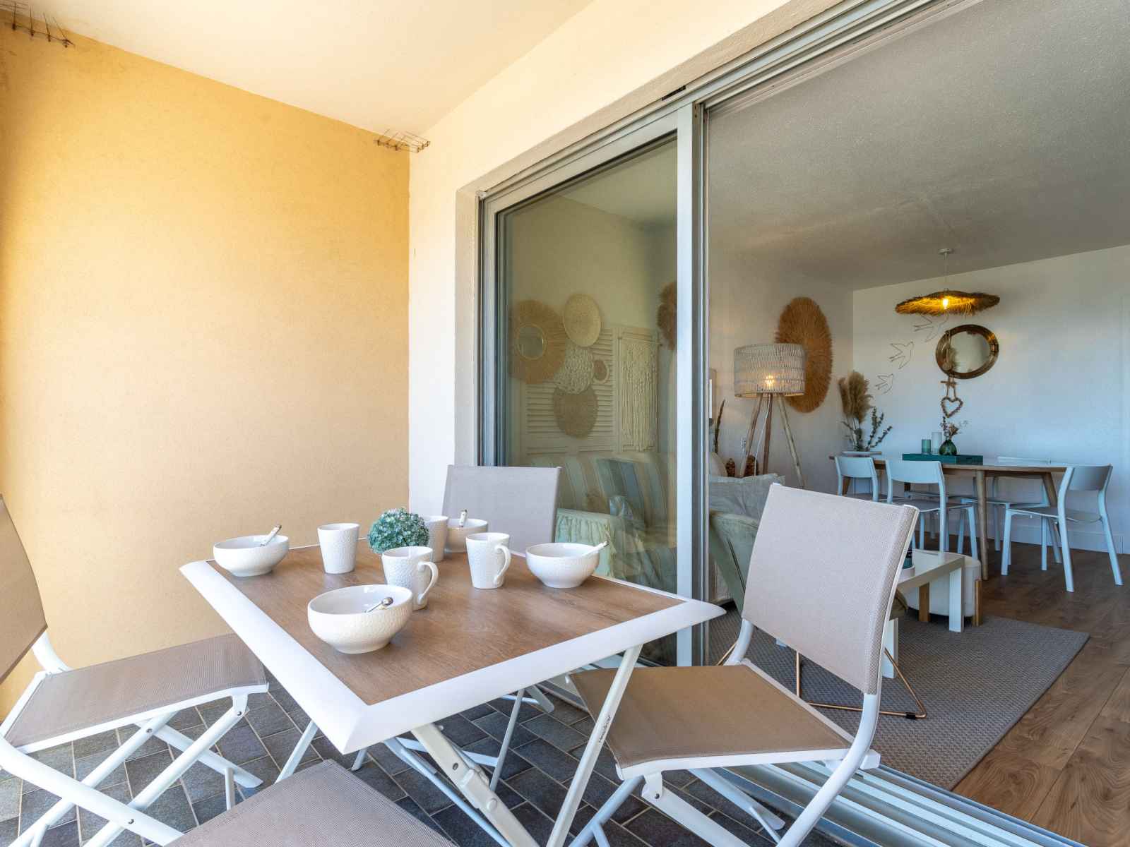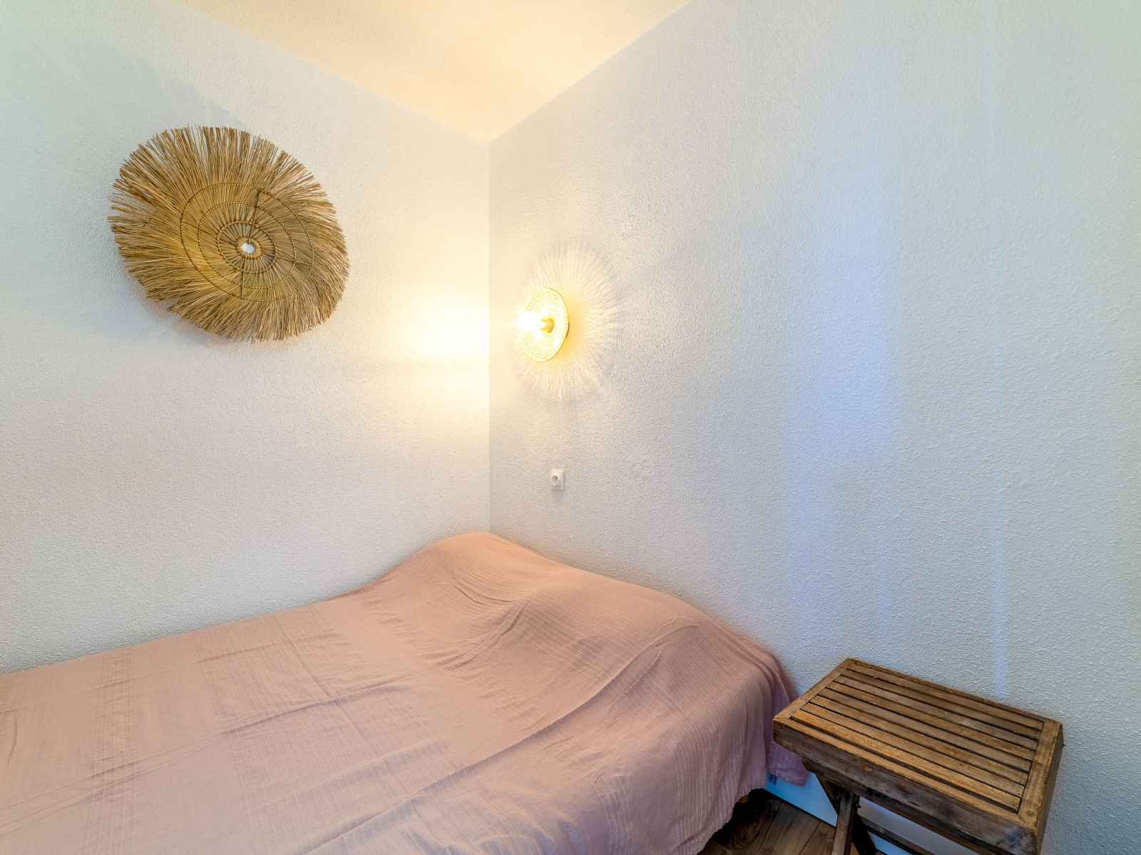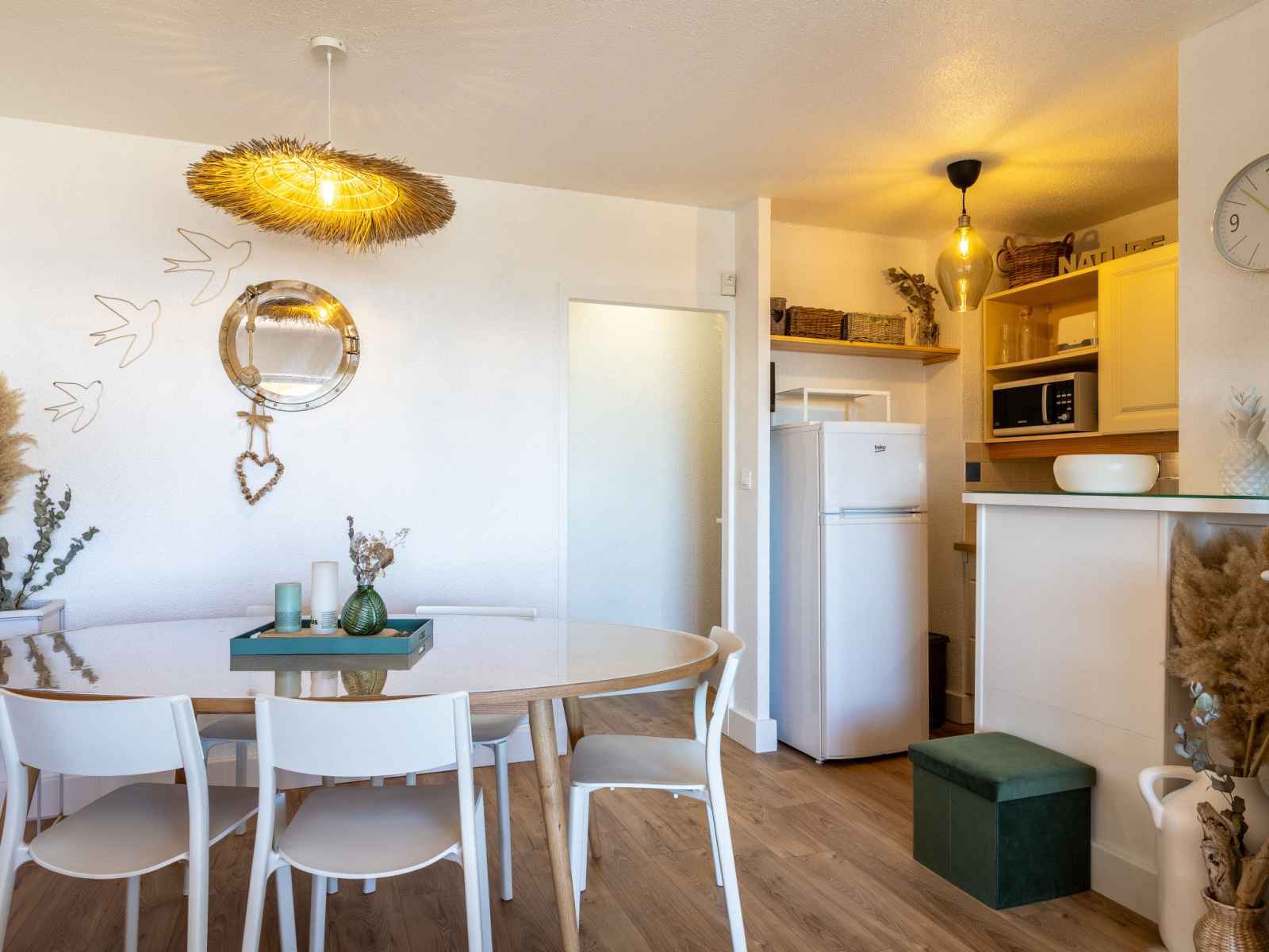 Studio 2 pièces 37 m2 au 4ème étage. clair, partiellement rénové en 2024, aménagement confortable et plaisant: séjour/salle à manger avec tv (écran plat), air-conditionné. sortie sur la terrasse. grande cabine avec 1 grand-lit (140 cm, longueur 190 cm). cabine avec 1 x 2 lits superposés (80 cm, longueur 190 cm). coin cuisine