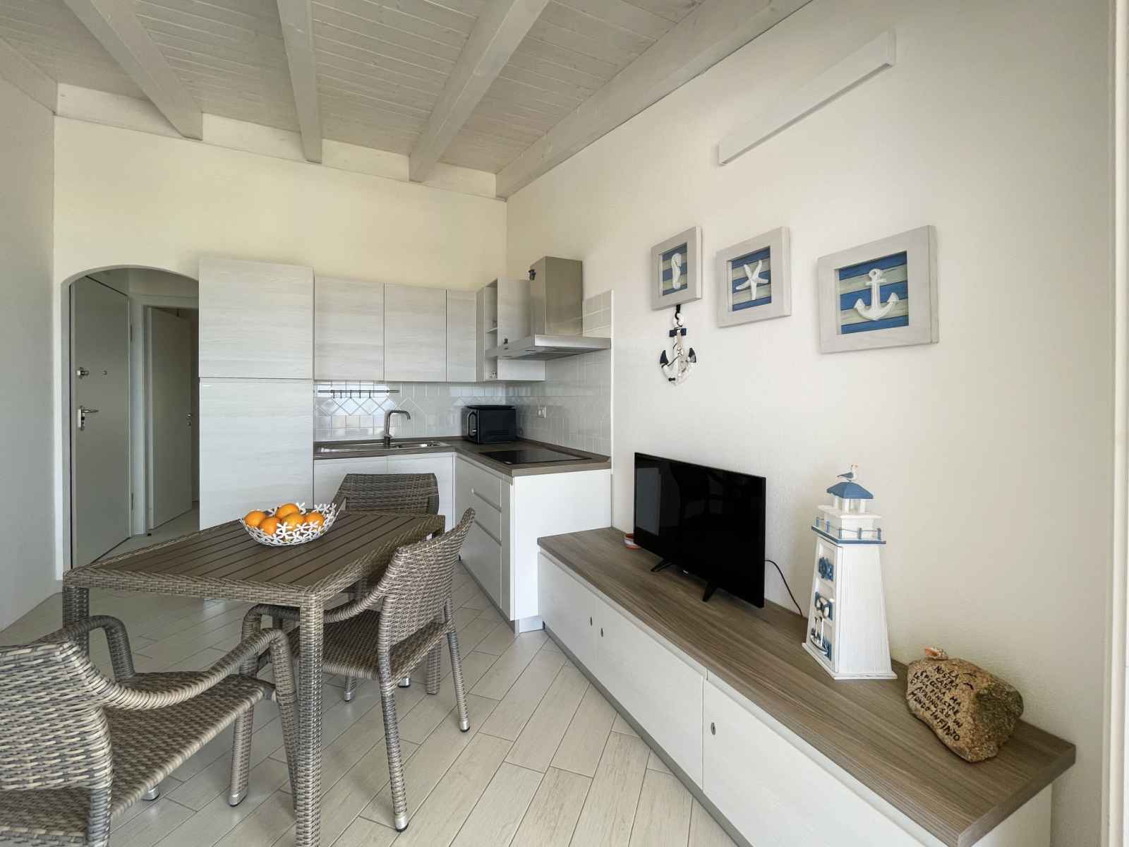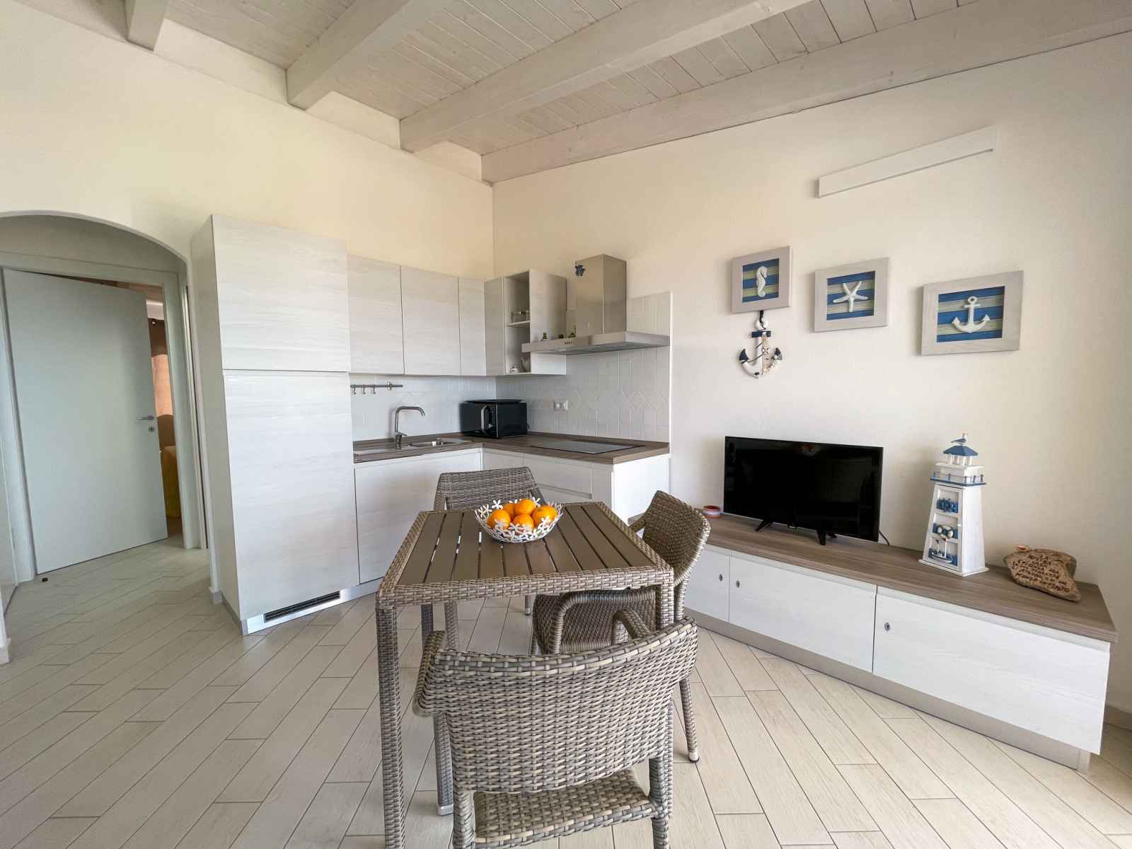 "le verande bilo con piscina", apt 2 pièces 35 m2, à l'étage supérieur. aménagement agréable et moderne: séjour/salle à manger ouvert avec 1 divan-lit, tv (satellite) et écran plat. sortie sur la véranda. 1 chambre double. cuisine (4 plaques de cuisson, congélateur). douche/bidet/wc. pas de chauffage. meubles de terrasse. très belle