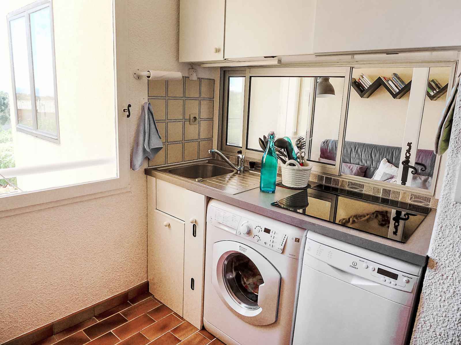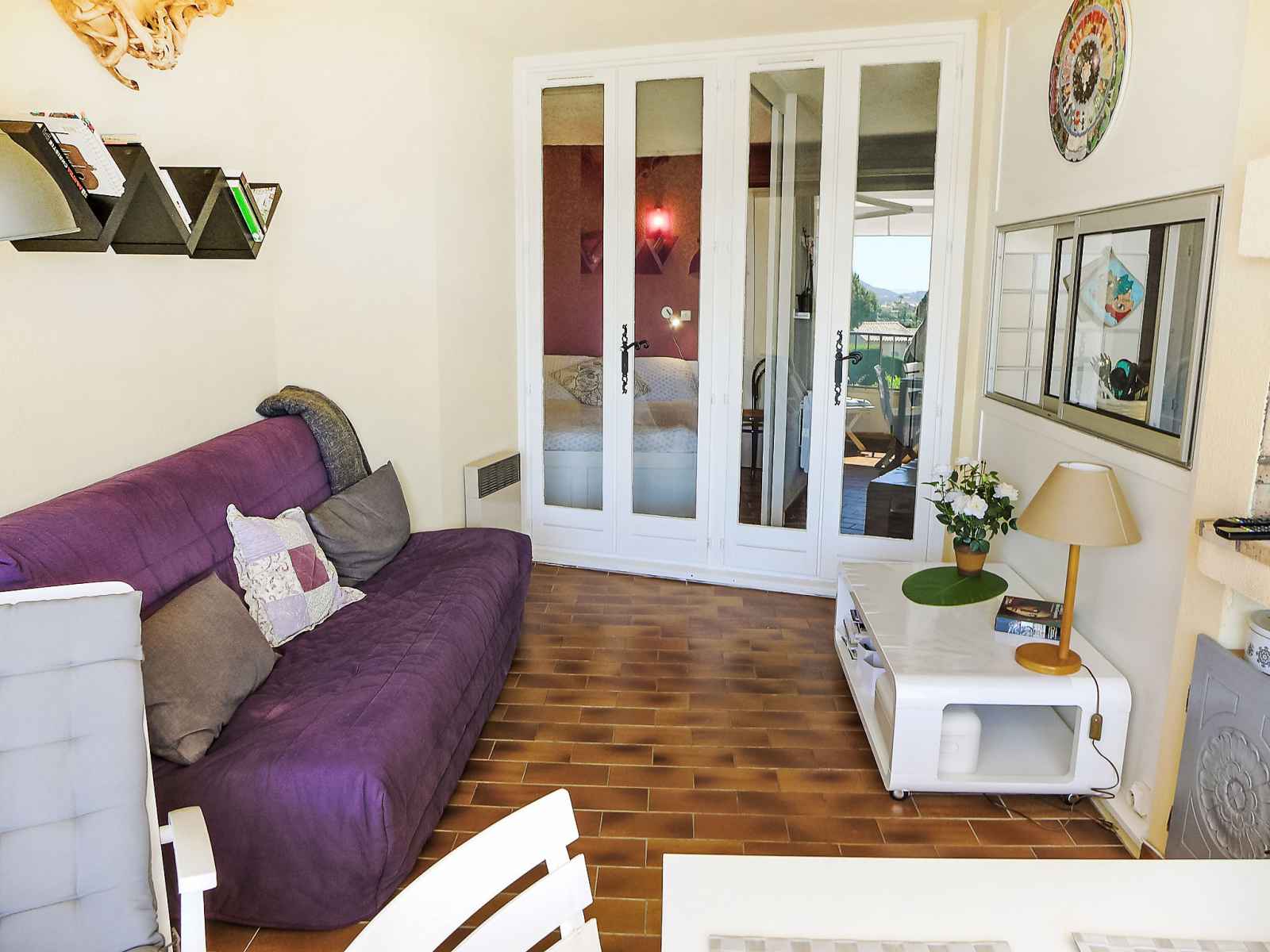 bouilloire électrique, micro-ondes, cafetière électrique). Salle de bains, WC séparé. Chauffage électrique. Terrasse 5 m2, couverte. Meubles de terrasse. Vue sur la mer. A disposition: lave-linge, fer à repasser, sèche-cheveux. Internet (Connexion WIFI, en sus). Place de parking No 28. Veuillez noter: maximum 1 animal/ chien autorisé. Détecteur de fumée. Au lieu d'une chambre fermée, des espaces de couchage sont situés dans une zone ouverte (galerie, alcôve...). 83048 000189 UO