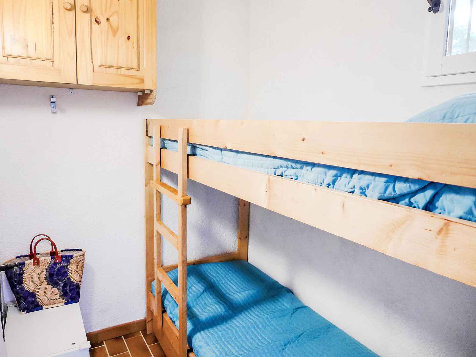 Apt 2 pièces 40 m2 au 1er étage, situation sud-est. clair, aménagement confortable: salle à manger. salon avec tv (écran plat). sortie sur la terrasse. 1 chambre avec 1 grand-lit (140 cm, longueur 190 cm). sortie sur la loggia. cabine avec 1 x 2 lits superposés. coin cuisine (mini-four, lave-vaisselle, 3 plaques à induction, grille-pain,