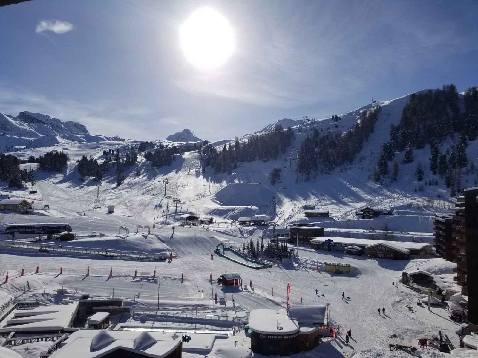 il est en exposition sud et au 7ème étage avec un balcon et vue sur les pistes.