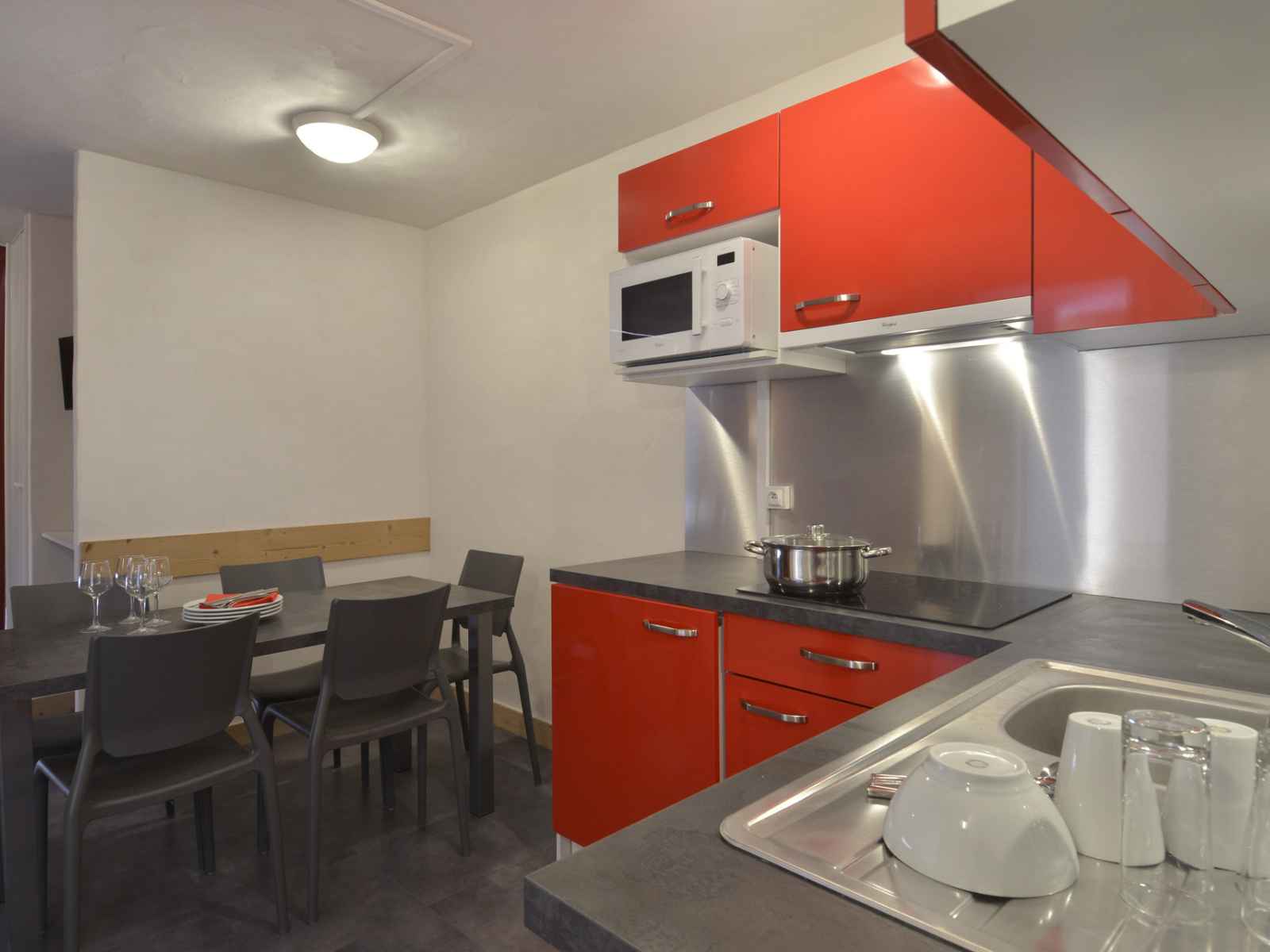 cuisine : ouverte sur le séjour avec un four mixte, 4 plaques vitrocéramiques, un réfrigérateur et un