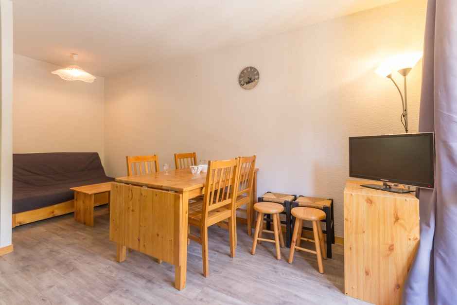 équipée ouverte sur le séjour (plaques vitrocéramiques, four et micro-ondes, lave-vaisselle, cafetière, bouilloire, petit frigo table top), d'une salle de bain avec baignoire et WC séparé. La chambre dispose d'un lit double. Dans le coin séjour, vous disposez d'un canapé BZ et d'un ensemble lit gigogne. Pour votre confort vous disposez d'une télévison écran plat. Casier à skis à votre disposition au rez-de-chaussée. Ses atouts : - Bel appartement bien équipé - Couettes - Résidence récente Linge et ménage de fin de séjour en suppléments. Animaux interdits. Appartement strictement non fumeur.