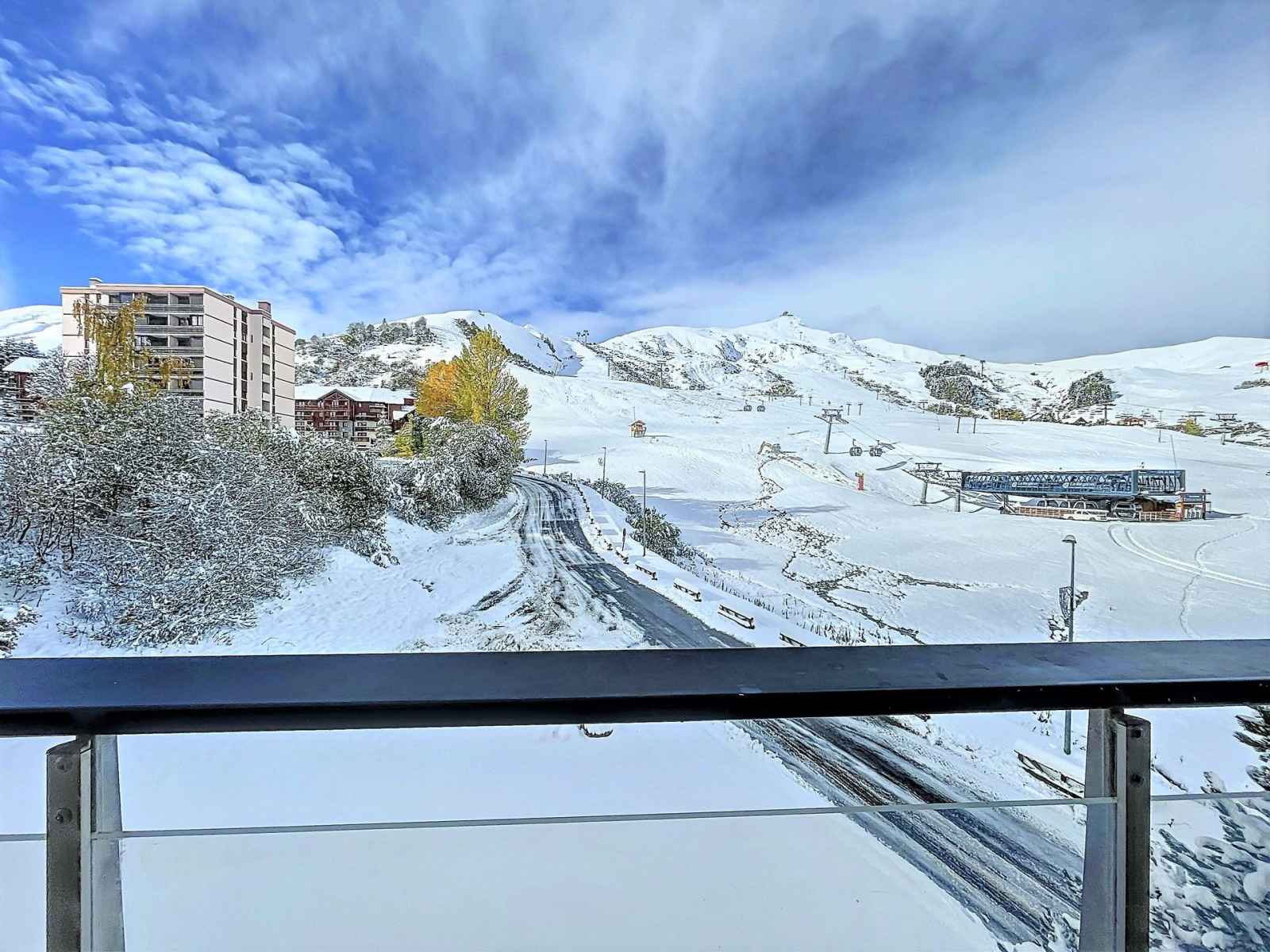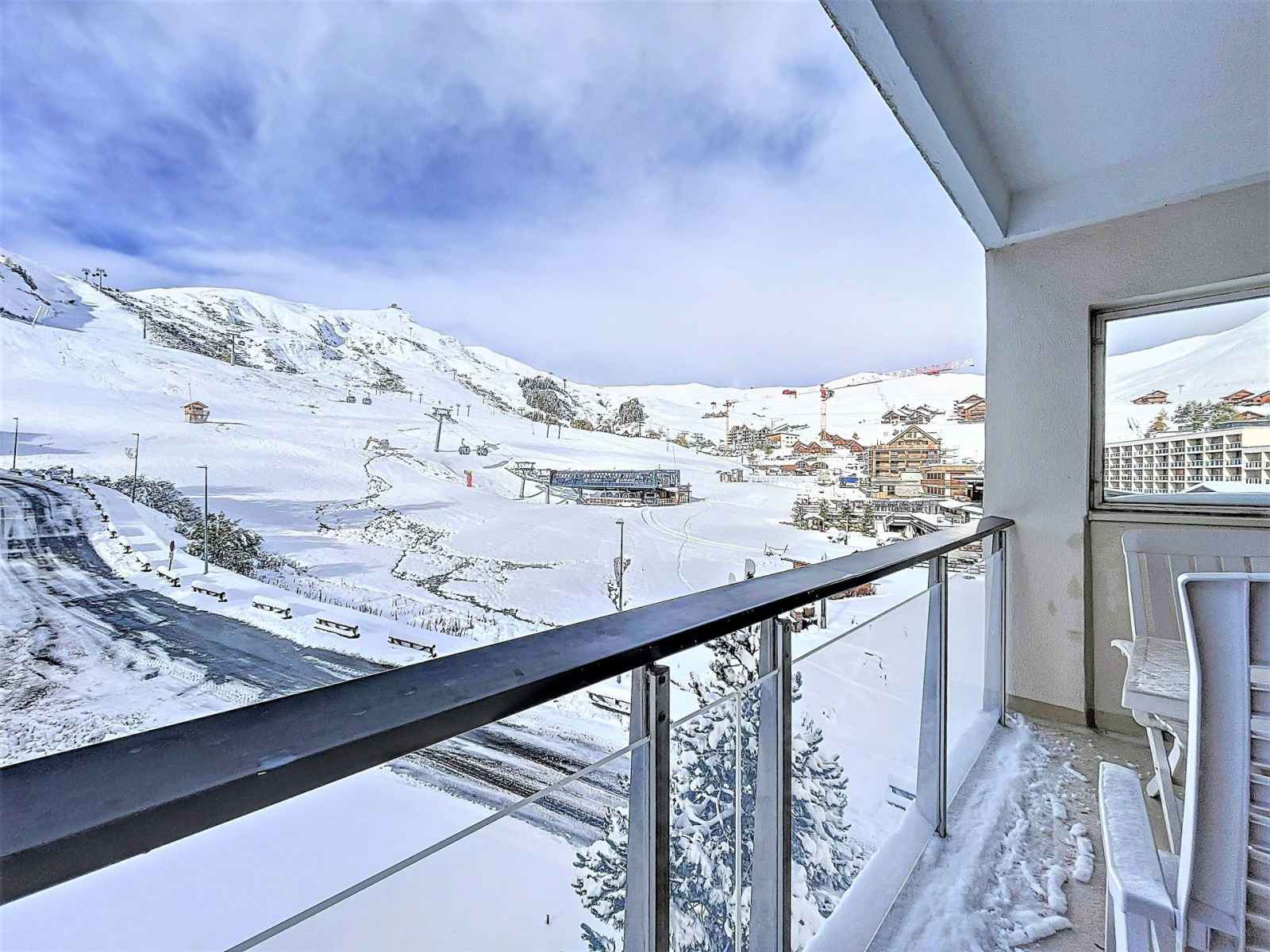 appartement trés lumineux avec balcon, vue immédiate sur les pistes et le front neige, en plein centre de la station de la toussuire, constitué d'un séjour équipé d'1