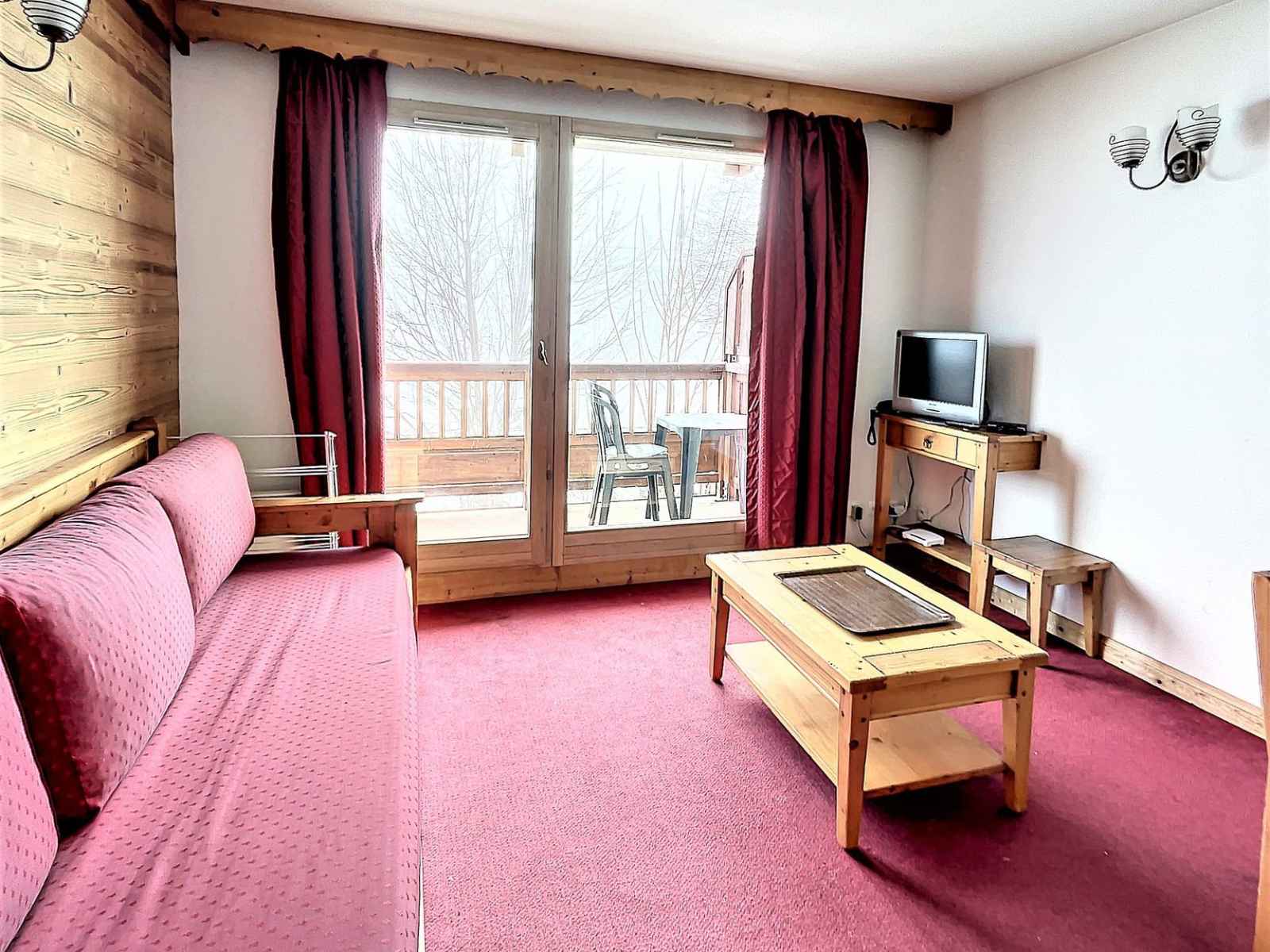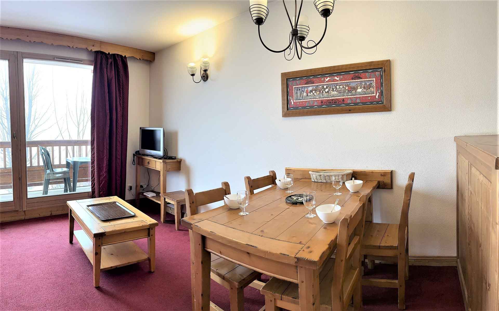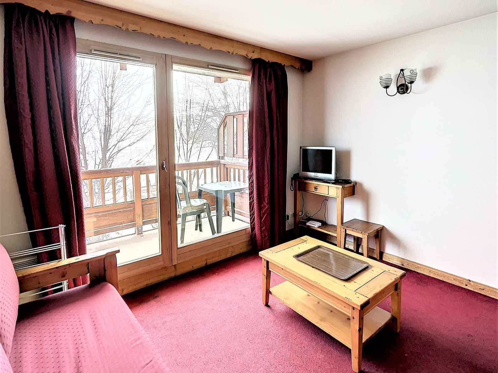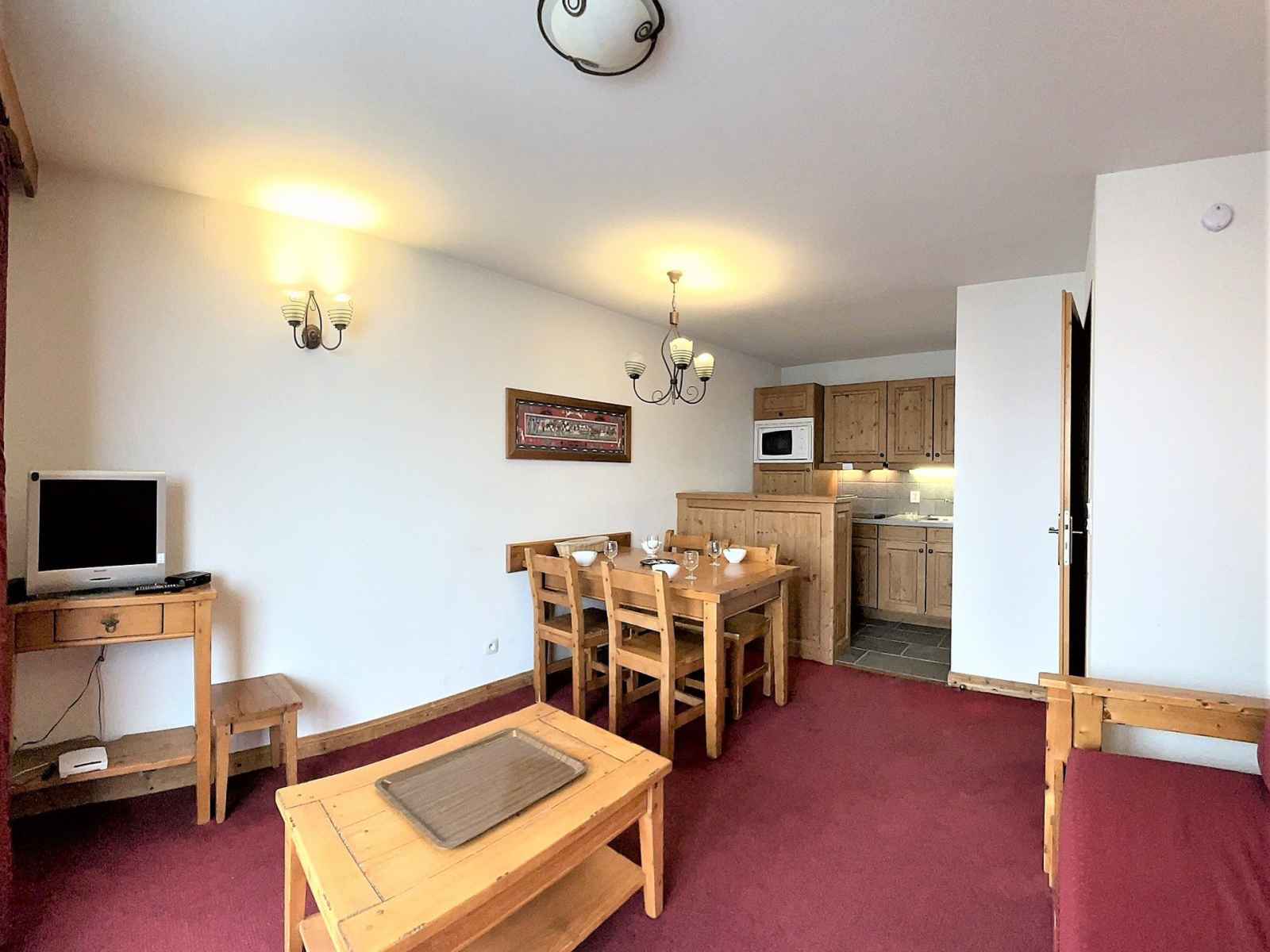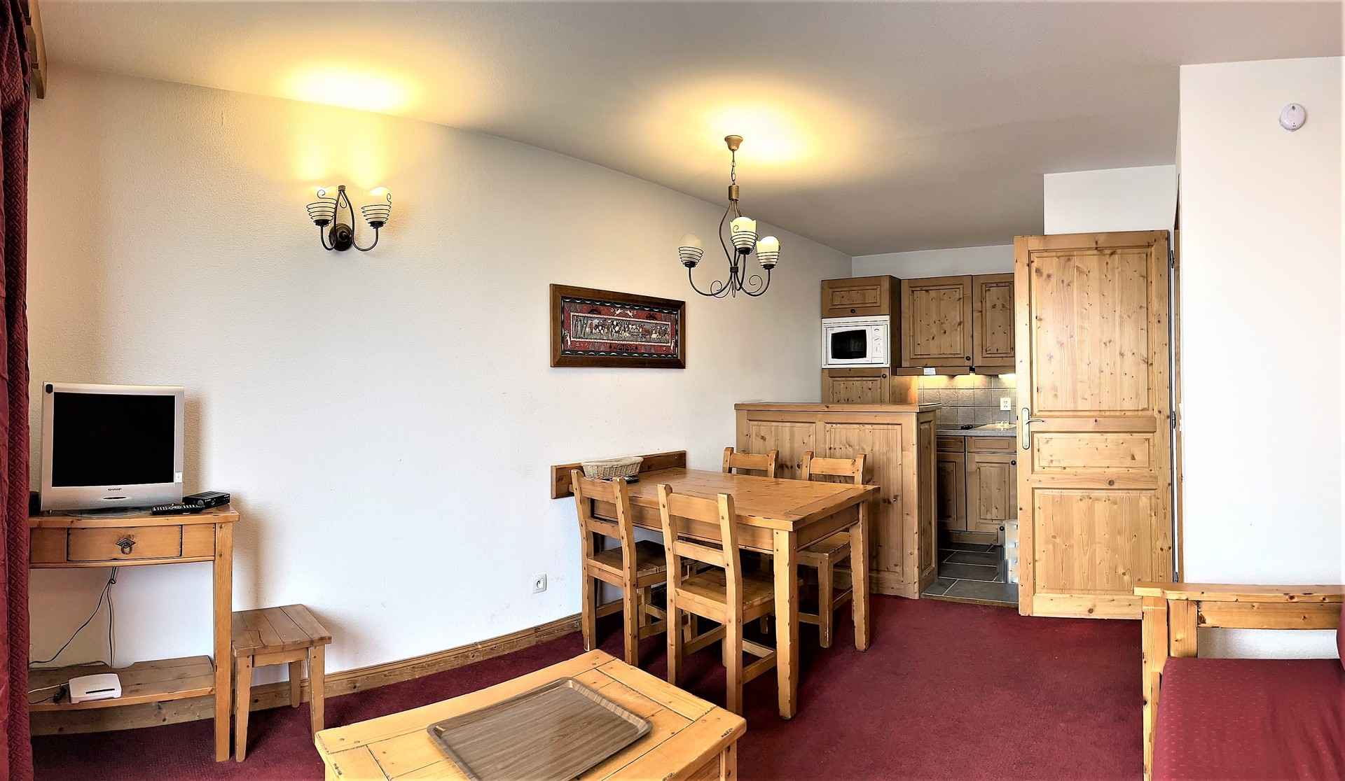 Bel appartement 2 pièces, de 36m² pour 4 personnes, situé à la toussuire, résidence l'ecrin des sybelles, entrée etendard au 1er étage, balcon sud à 500m des pistes.