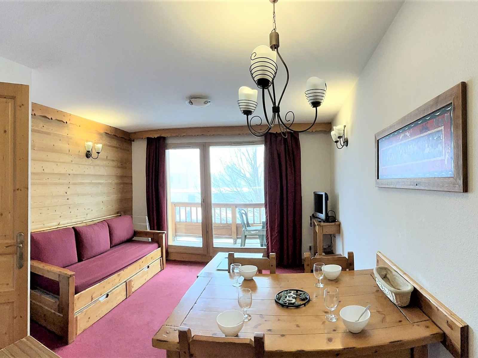 appartement cosy plein sud avec balcon, à 150m du centre de la station et 500m des pistes.