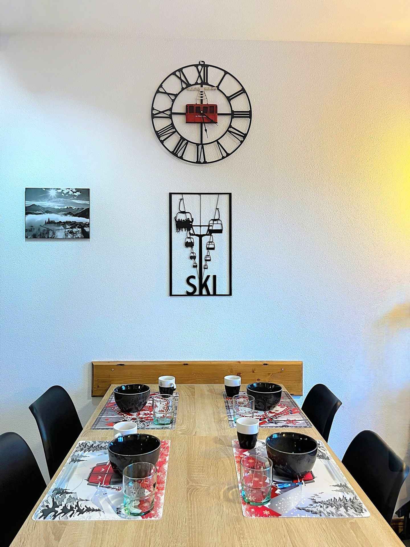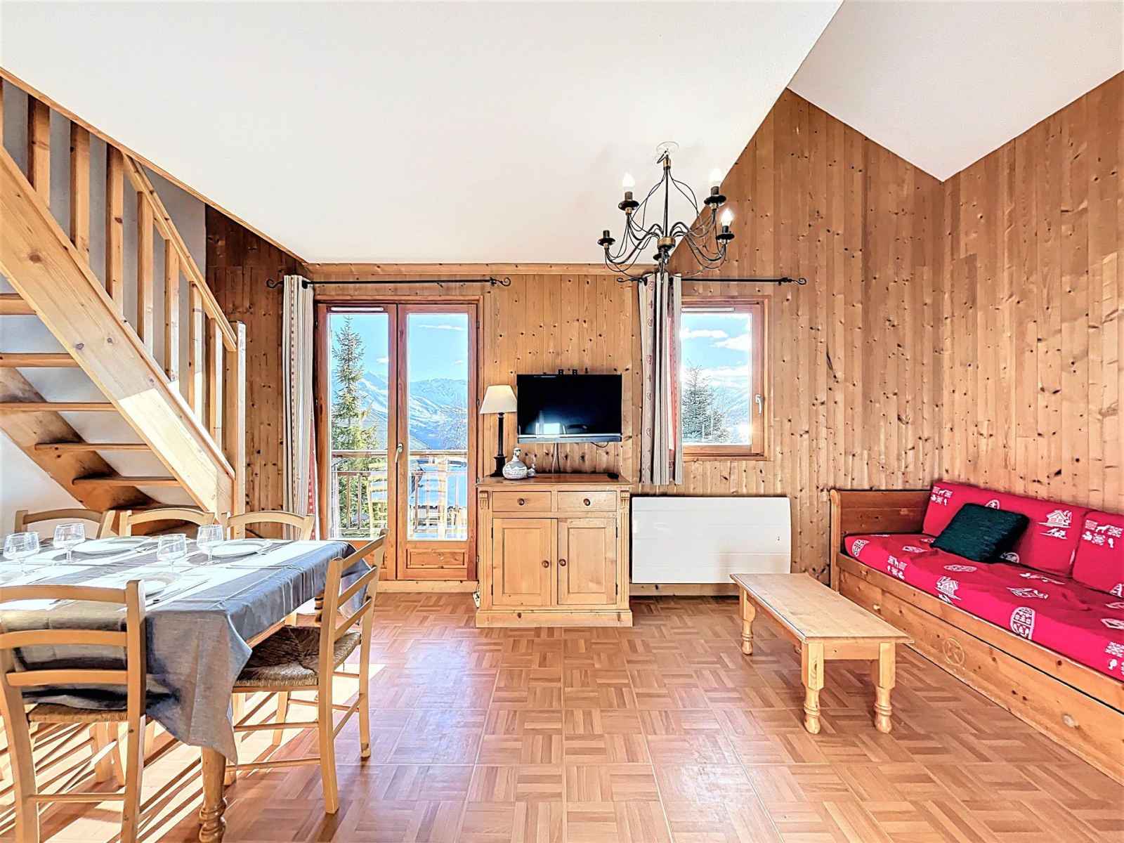appartement cosy avec grand balcon vue sur les pistes et la station, parking couvert privé, à 150m du centre de la station et 500m des pistes.