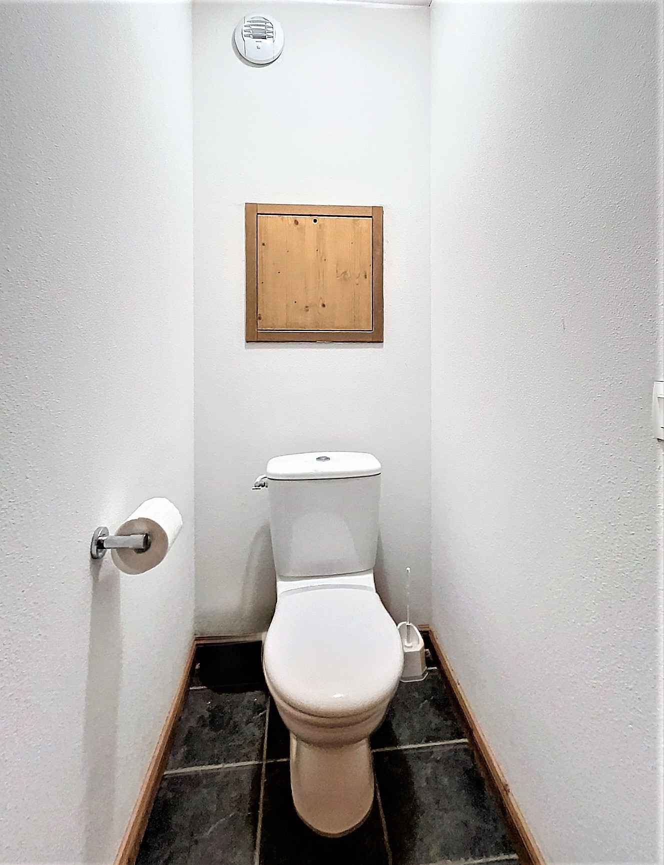 constitué d'une entrée avec grand placard, d'une salle de bain avec sèche cheveux et de wc séparés, le couloir ouvre