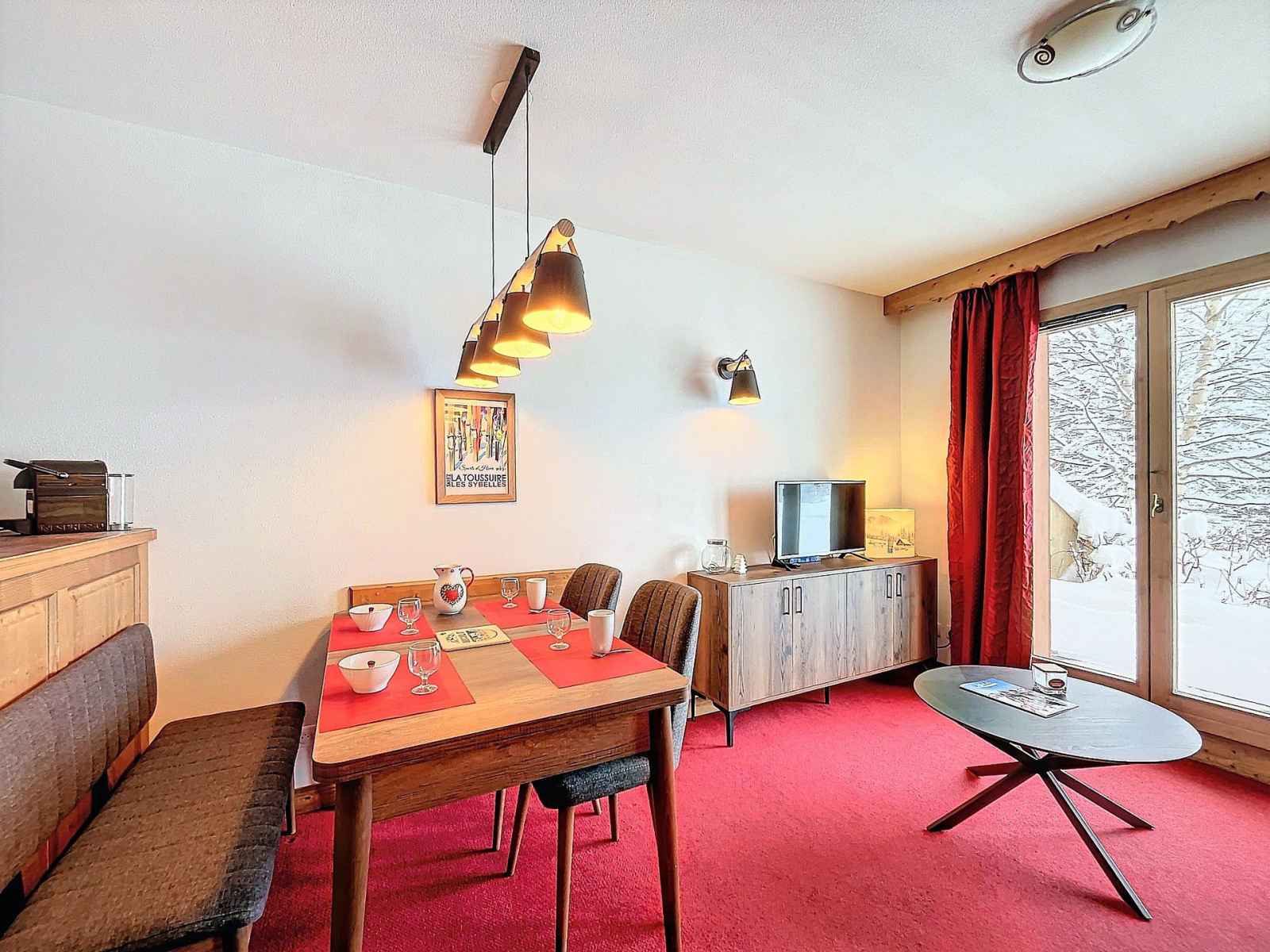 Bel appartement 2 pièces, de 36m² pour 4 personnes, situé à la toussuire, résidence l'ecrin des sybelles, entrée etendard au rdc, terrasse privative, à 150m du centre de la station et à 500m des pistes. gamme evasion.