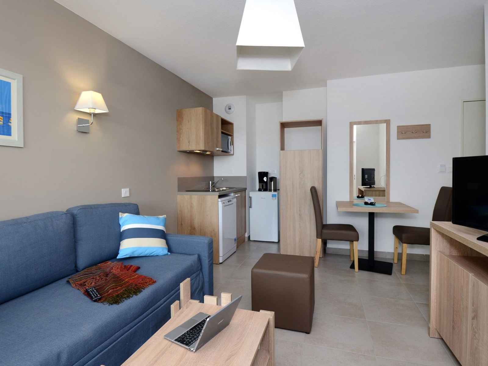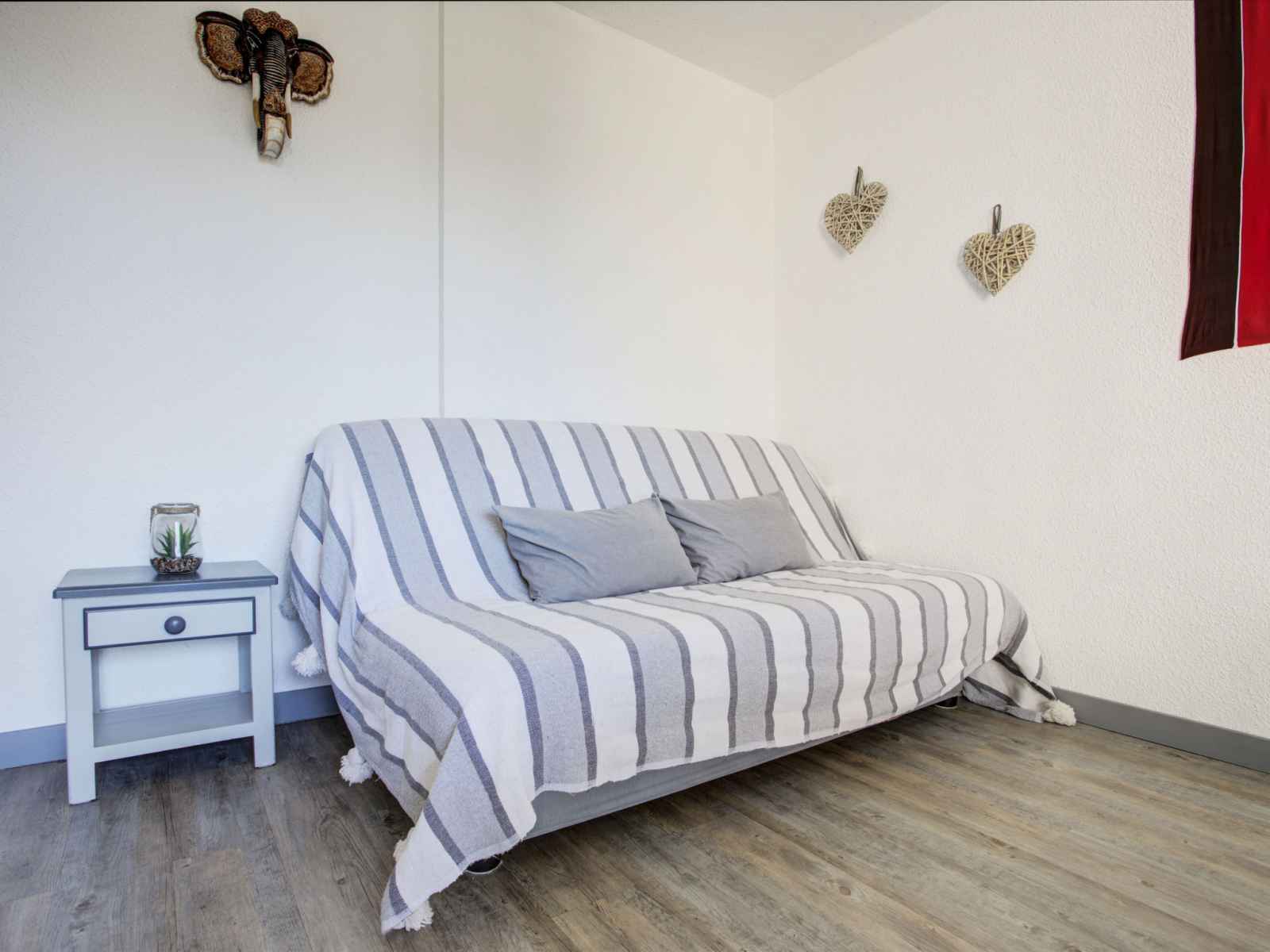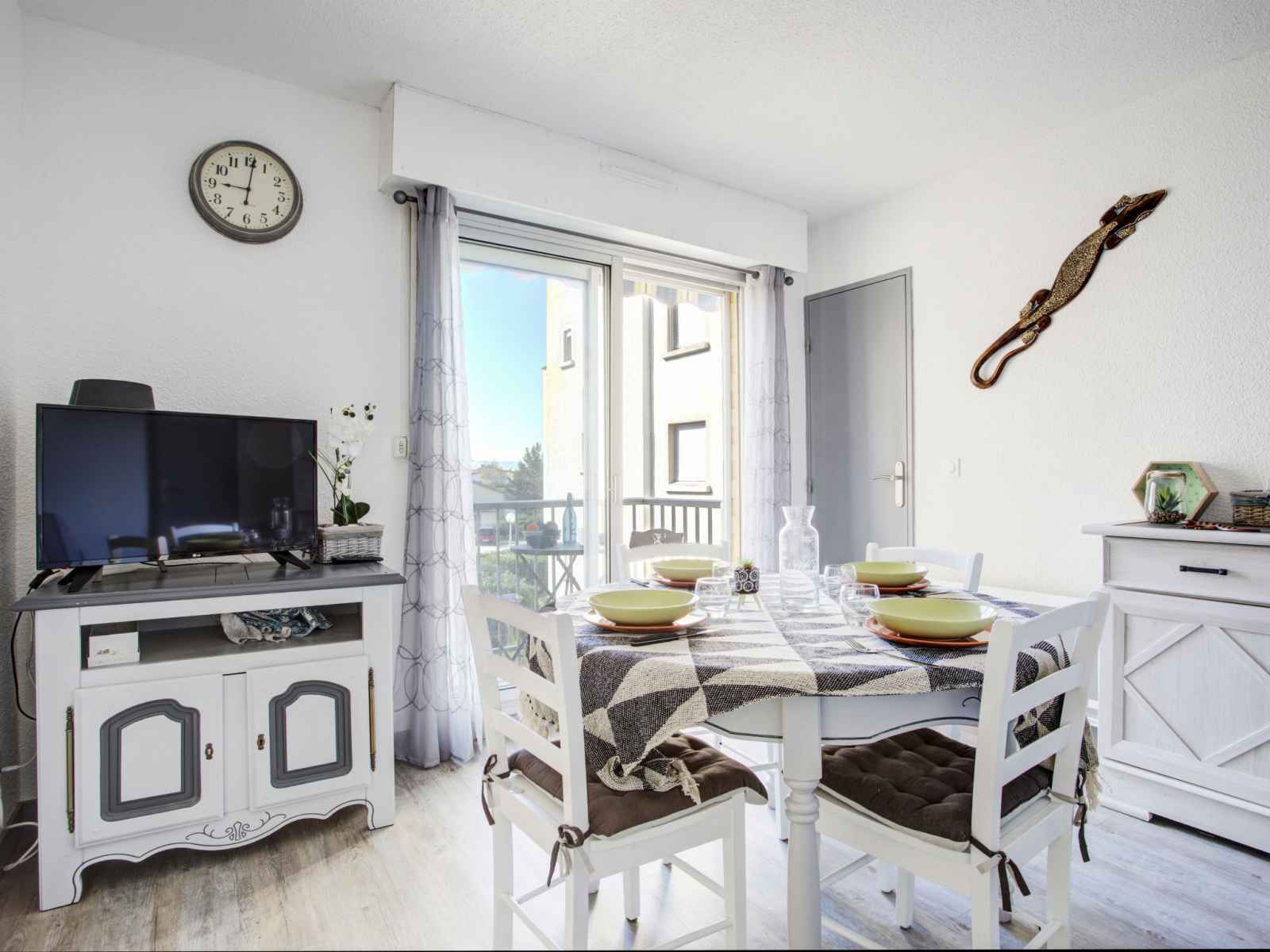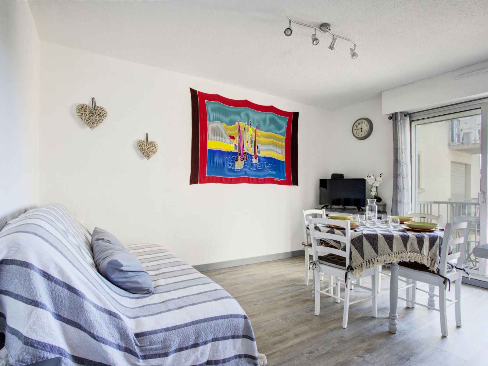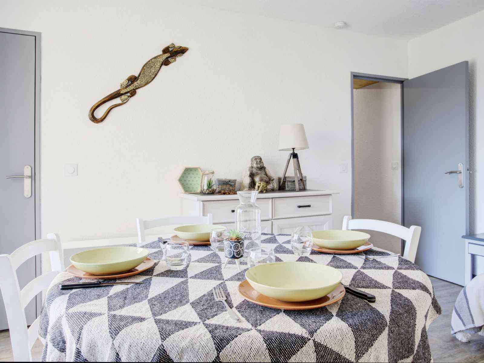 Apt 2 pièces 34 m2 au 1er étage. séjour/salle à manger avec 1 divan-lit double (1 x 140 cm, longueur 190 cm), tv (écran plat). sortie sur le balcon. 1 chambre avec 1 grand-lit (1 x 140 cm, longueur 190 cm), ventilateur. coin cuisine (lave-vaisselle, 2 plaques à induction, grille-pain, bouilloire électrique, micro-ondes, congélateur,