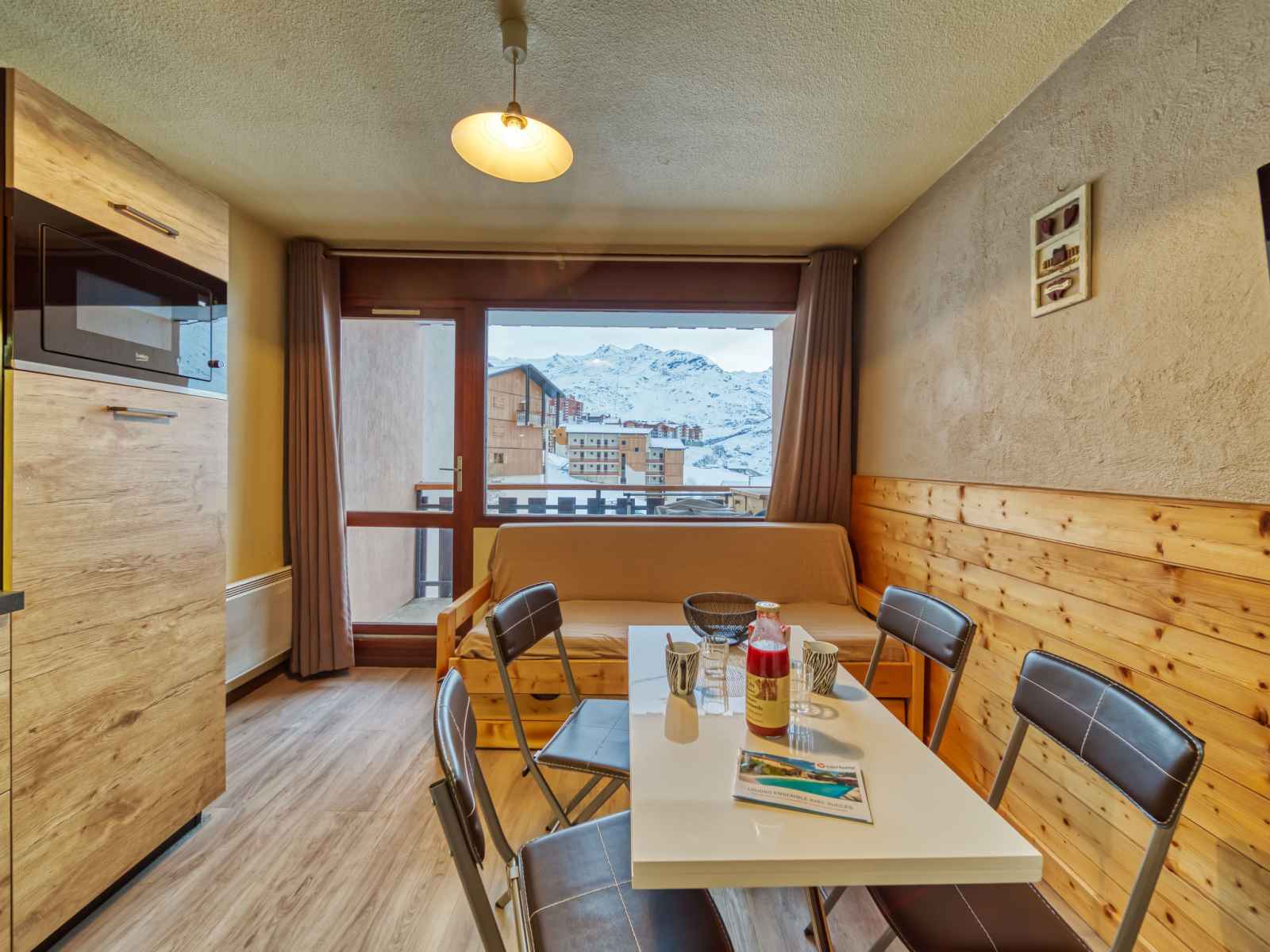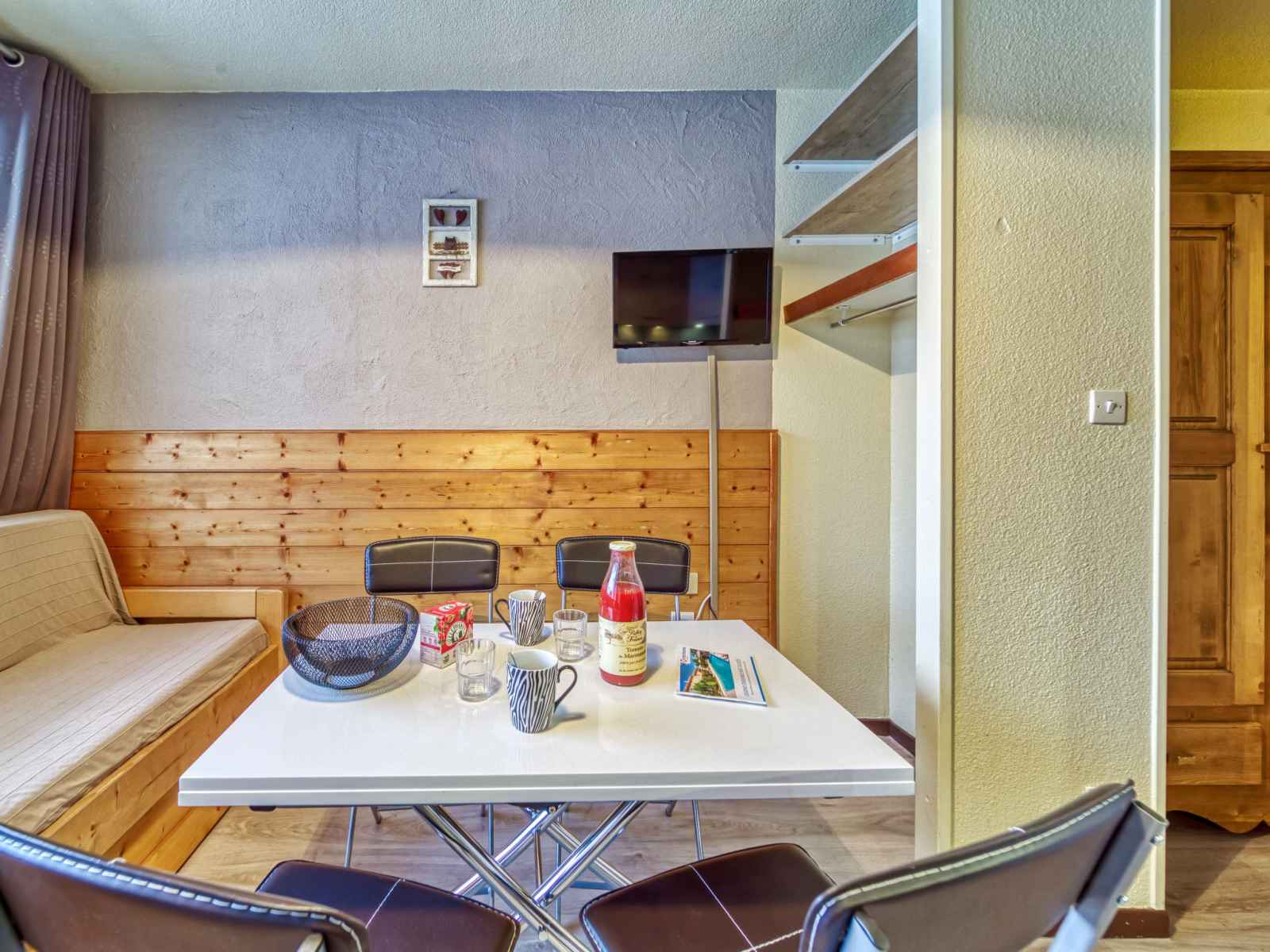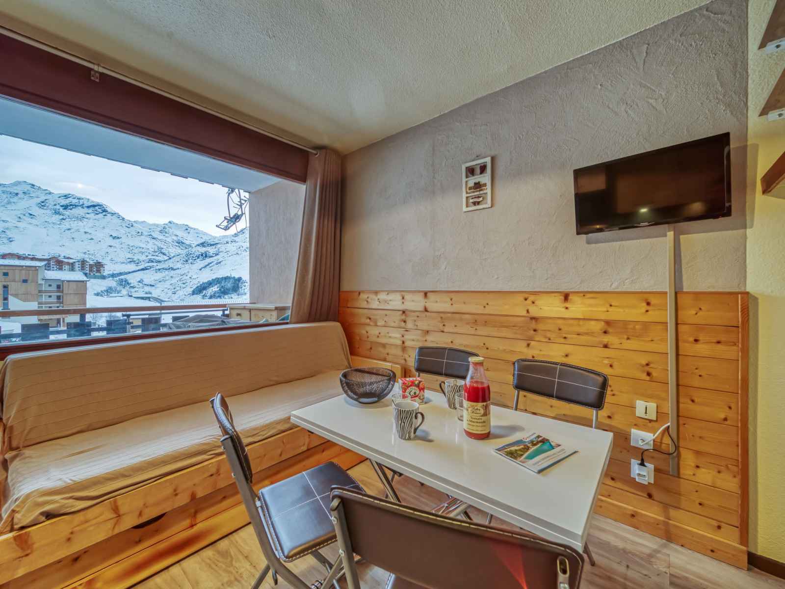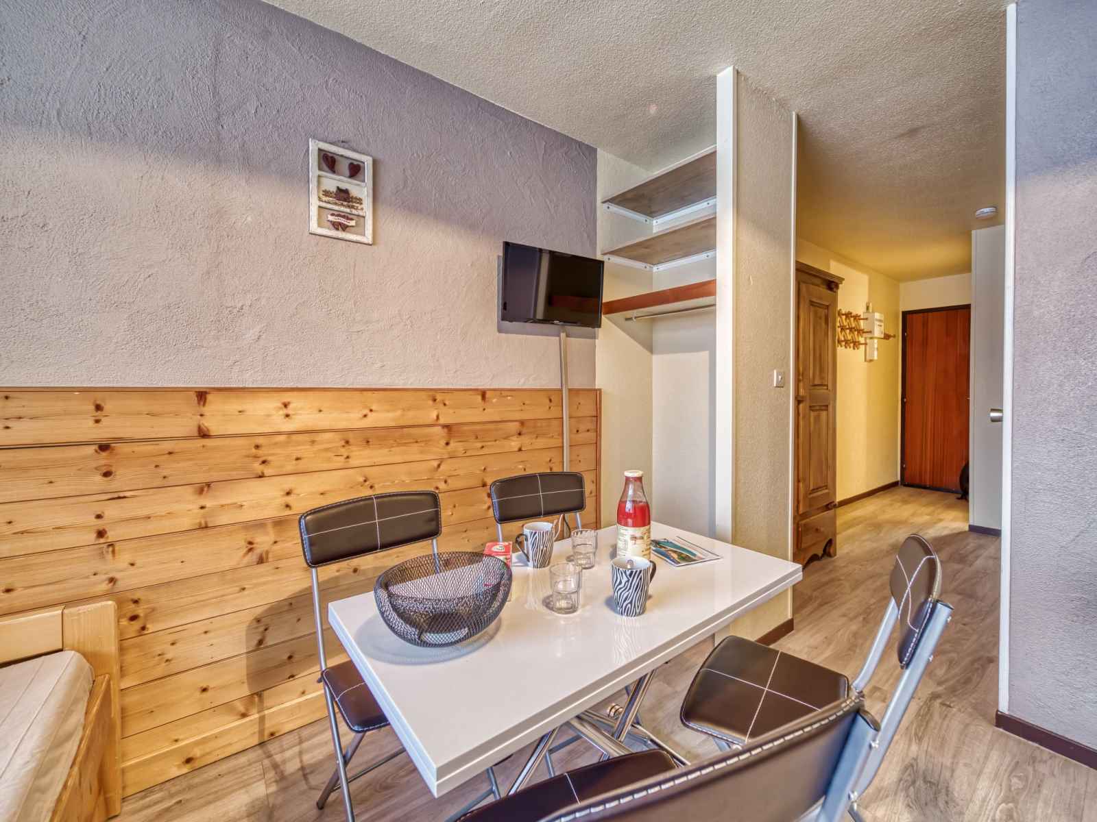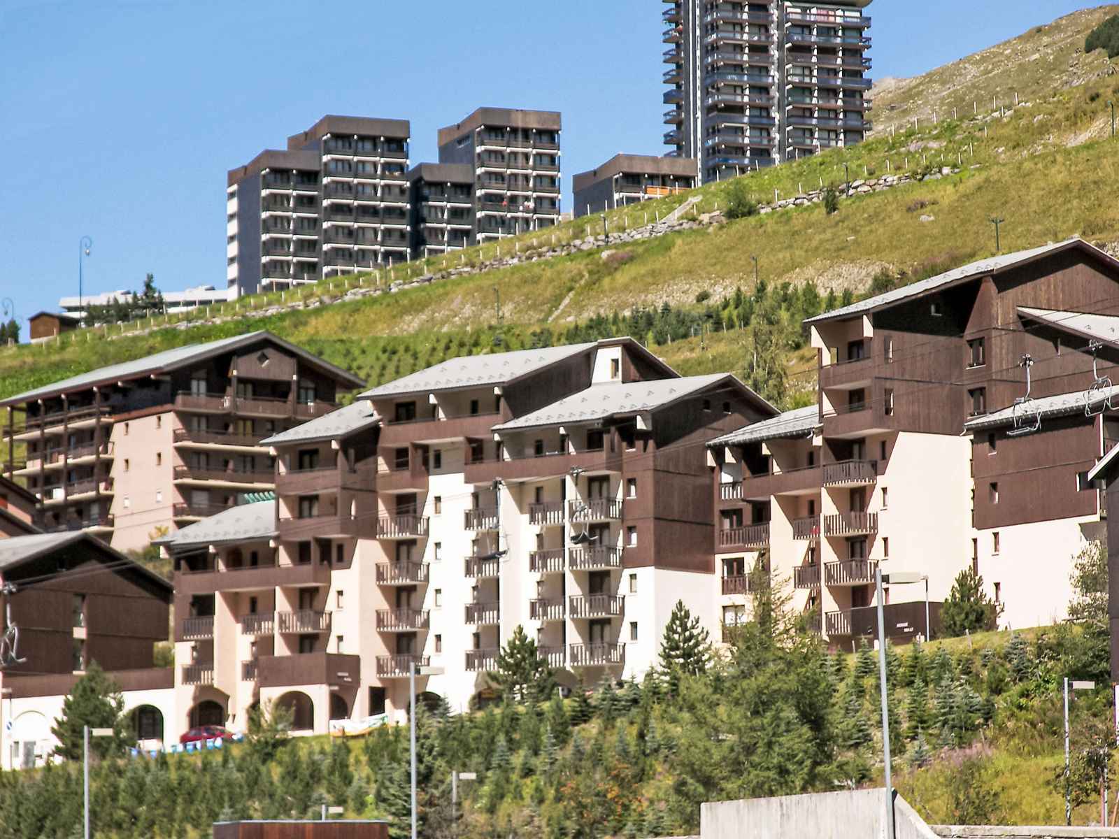 "argousier 134 b", apt 2 pièces 26 m2 au 4ème étage. aménagement agréable: séjour/salle à manger avec 1 lit gigogne (2 pers. 2 x 80 cm, longueur 190 cm), tv (écran plat). 1 petite chambre avec 1 x 2 lits superposés (80 cm, longueur 190 cm). coin cuisine (2 plaques de cuisson, four, bouilloire électrique, micro-ondes, cafetière