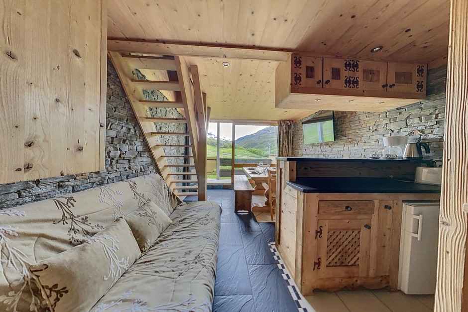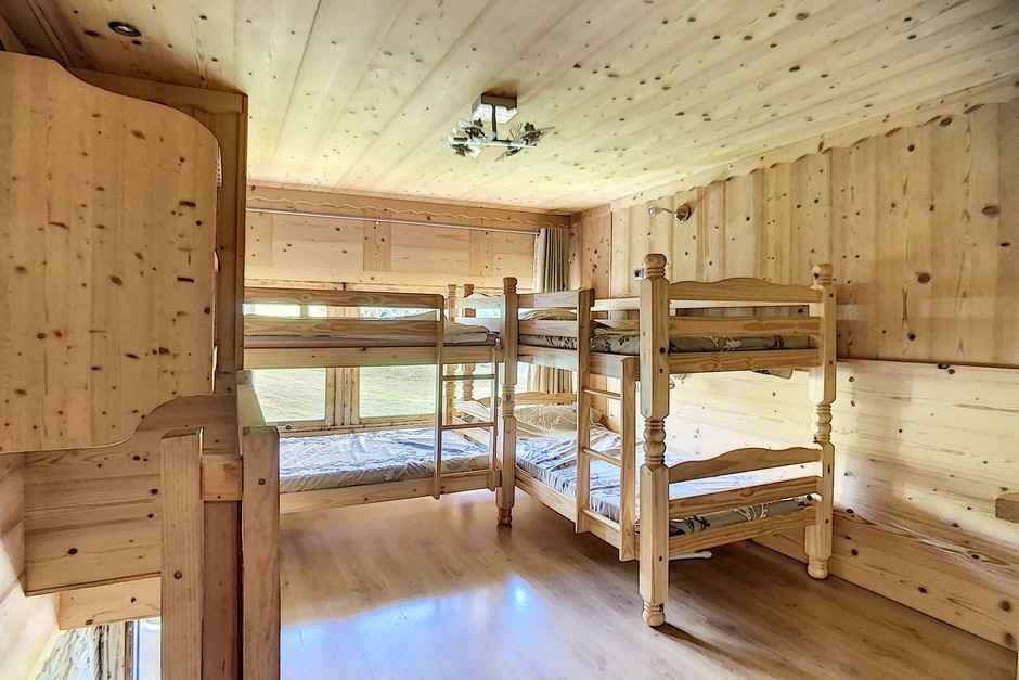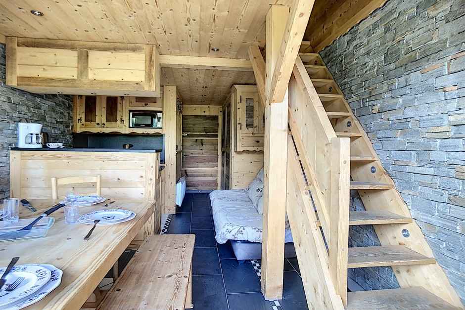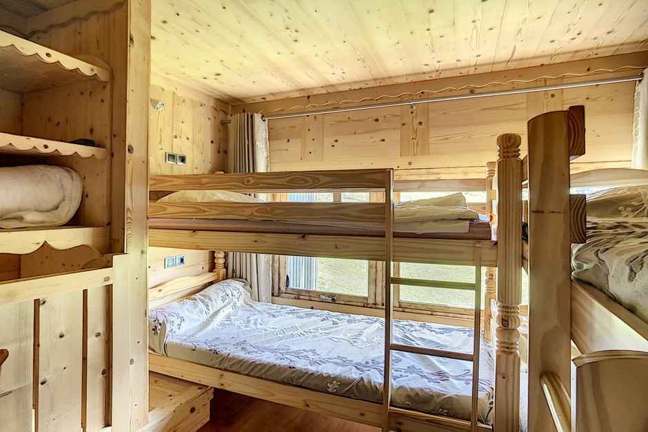haut) : 1 lit double + Télévision Mezzanine ouverte : 4 lits superposés + Télévision Salle de douche avec WC et lave linge. Sol : lino dans tout l'appartement Appartement non fumeur Appartement équipé de couettes Serviettes non fournies WIFI station payant (sous réserve de couverture de réseau) Le couchage en hauteur ne convient pas à des enfants de moins de 6 ans