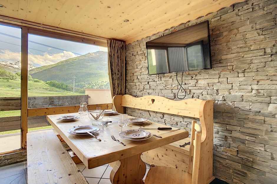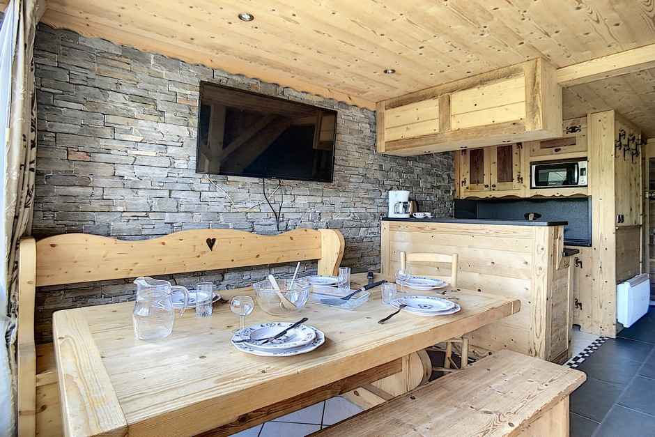 Superbe appartement entièrement rénové avec 3 pièces de 45 m² pour 6 personnes. il est situé en rez de neige avec un balcon orienté sud. entrée 3.