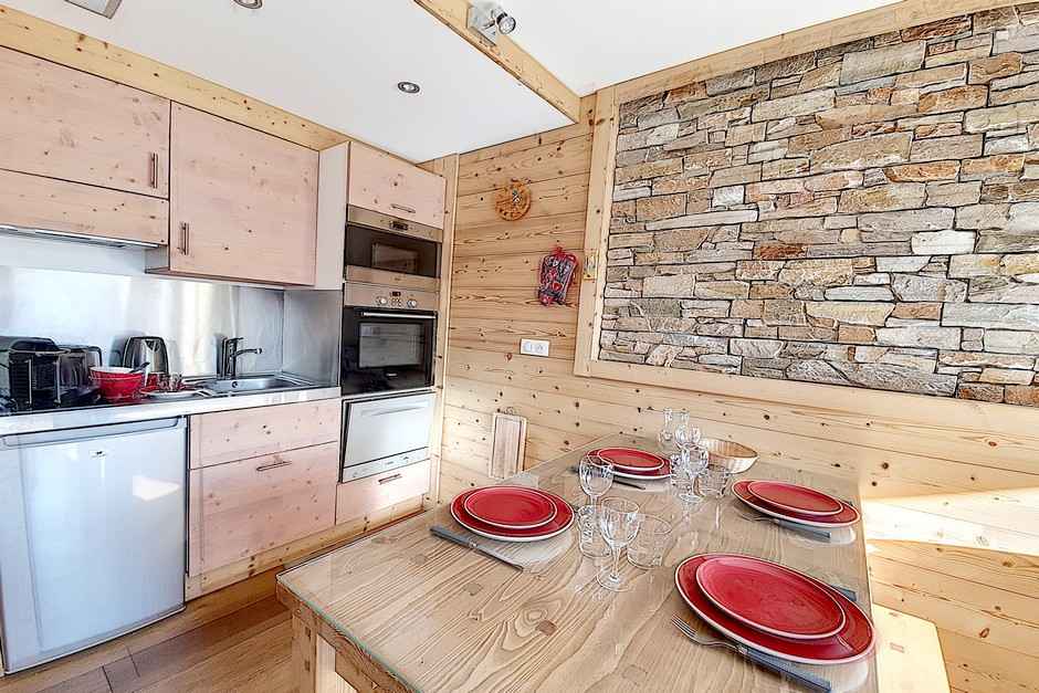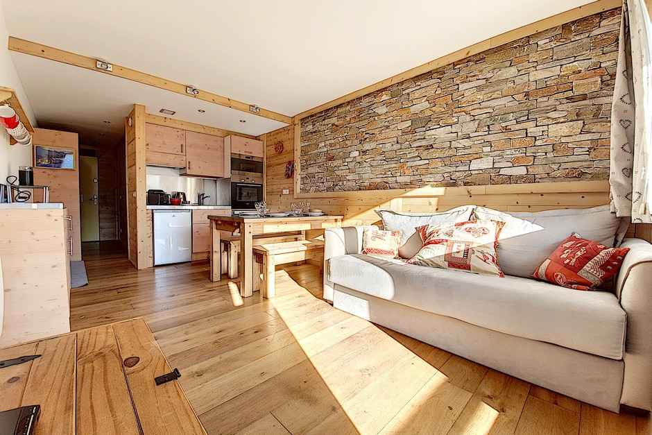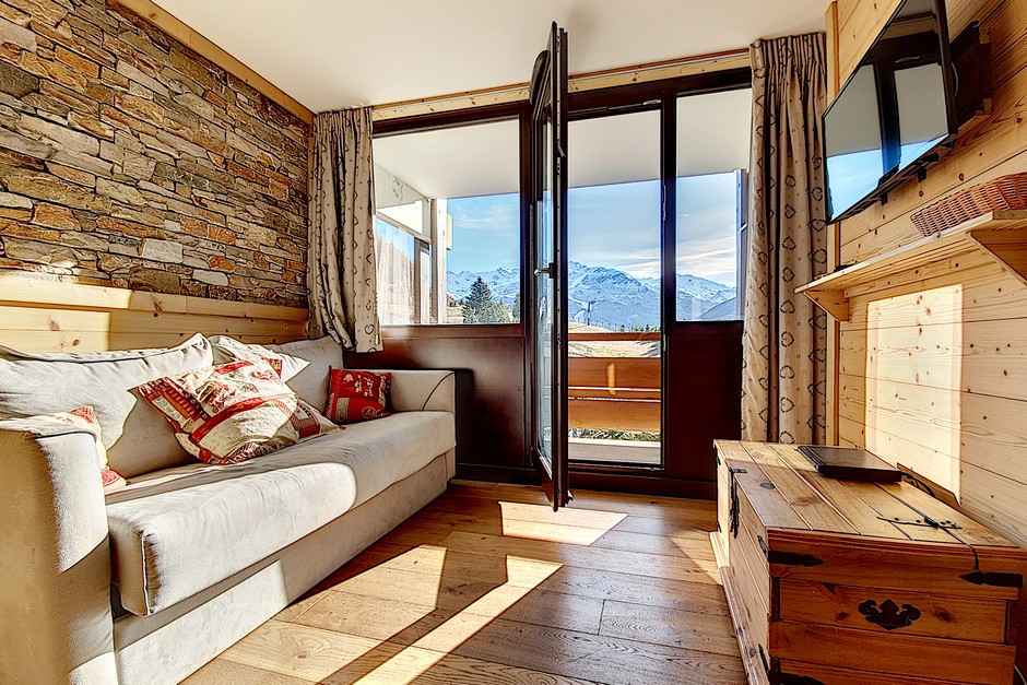 il a un balcon sud (vue pistes) côté séjour et un balcon nord côté chambre (vue station)