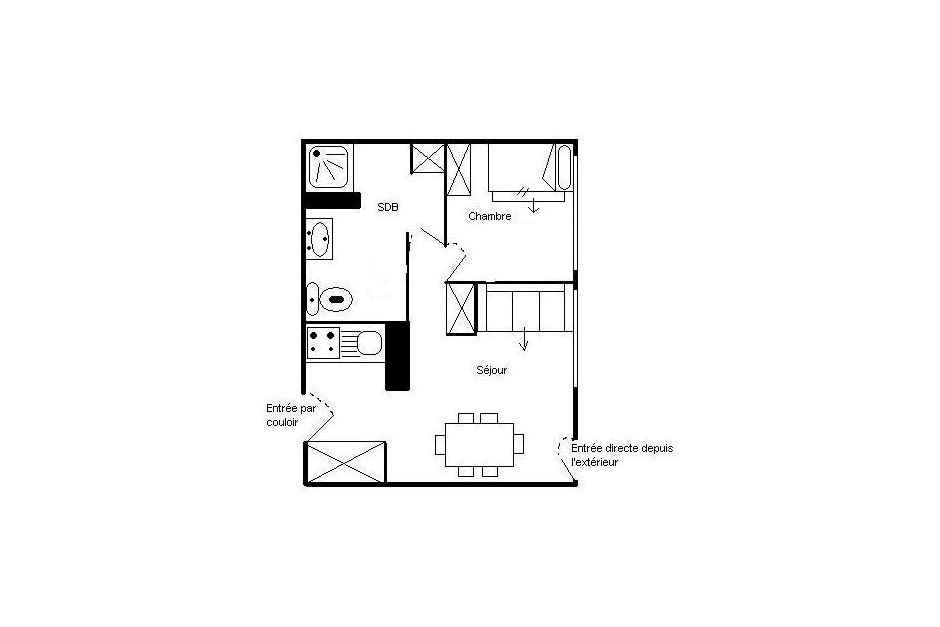 Joli appartement de 2 pièces pour 5 personnes. il est situé aurez de chaussée avec une orientation ouest pour 30m². (appartement sans balcon)