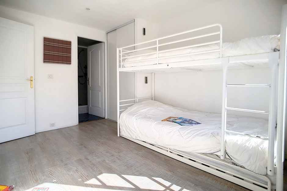 chambre : 2 lits simples superposés + 1 lit tiroir (90 x 200)