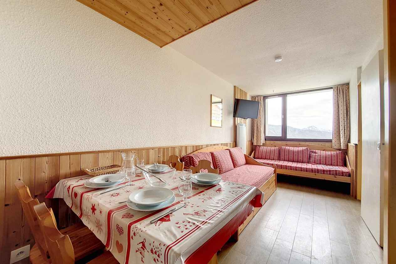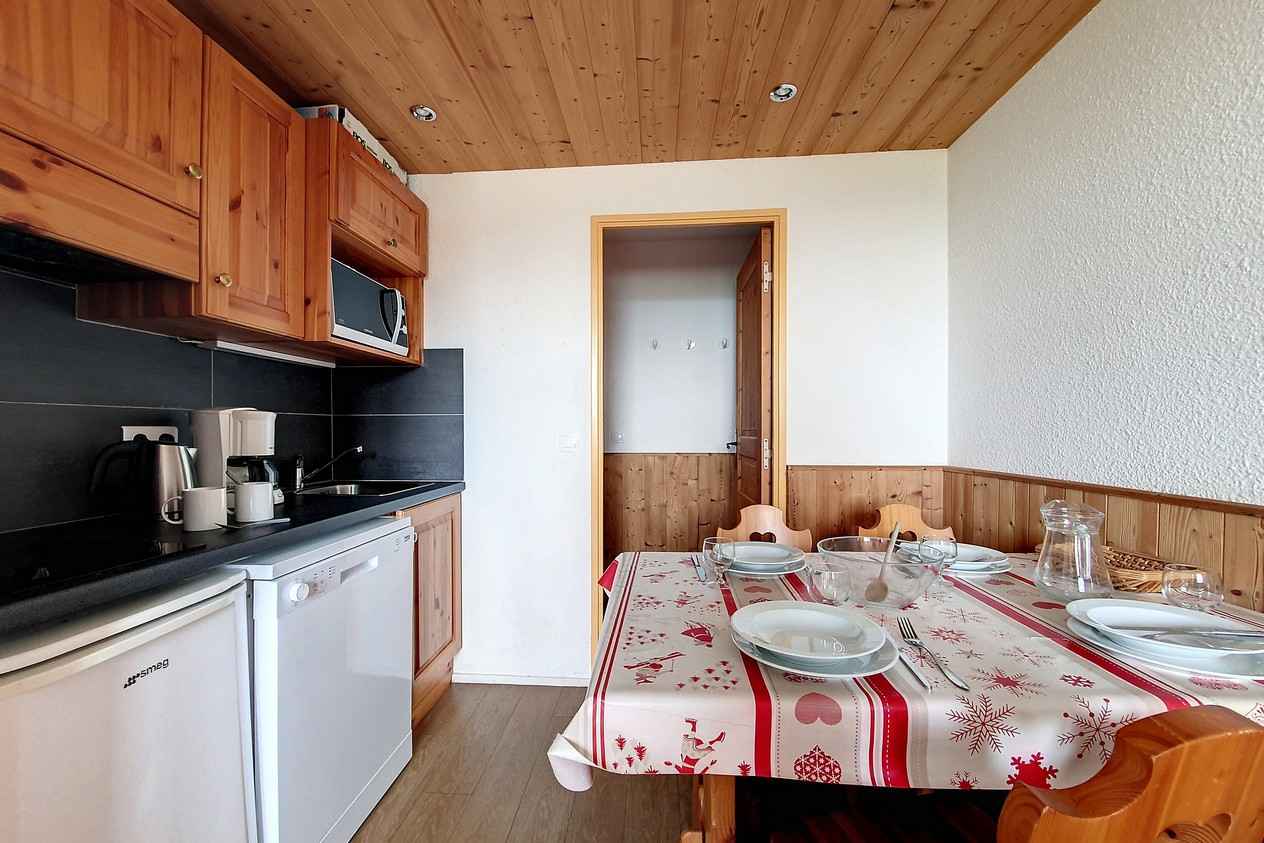 parking gratuit au pied de l'immeuble. commerces et école de ski à proximité. les pistes sont à 250 mètres.