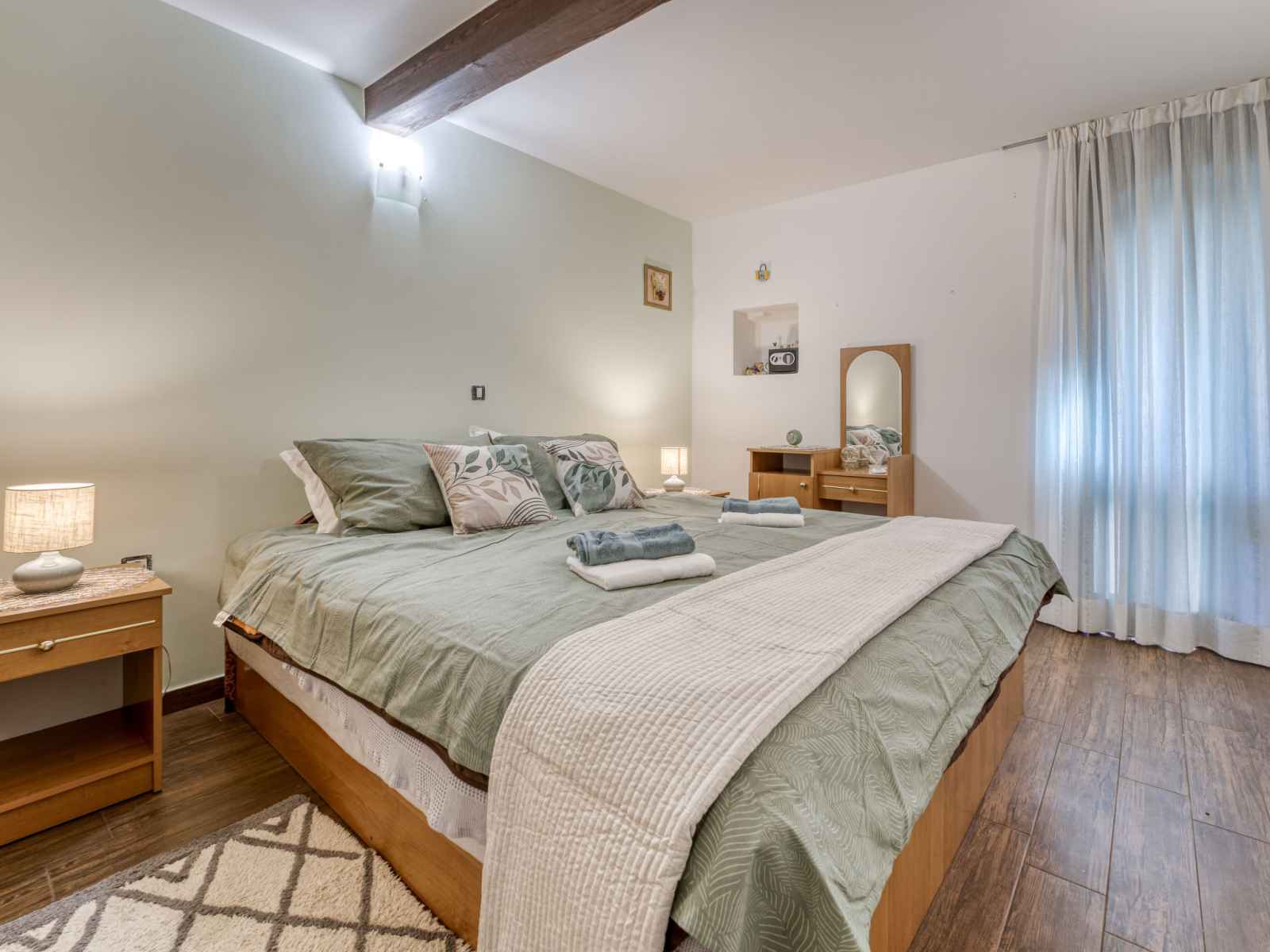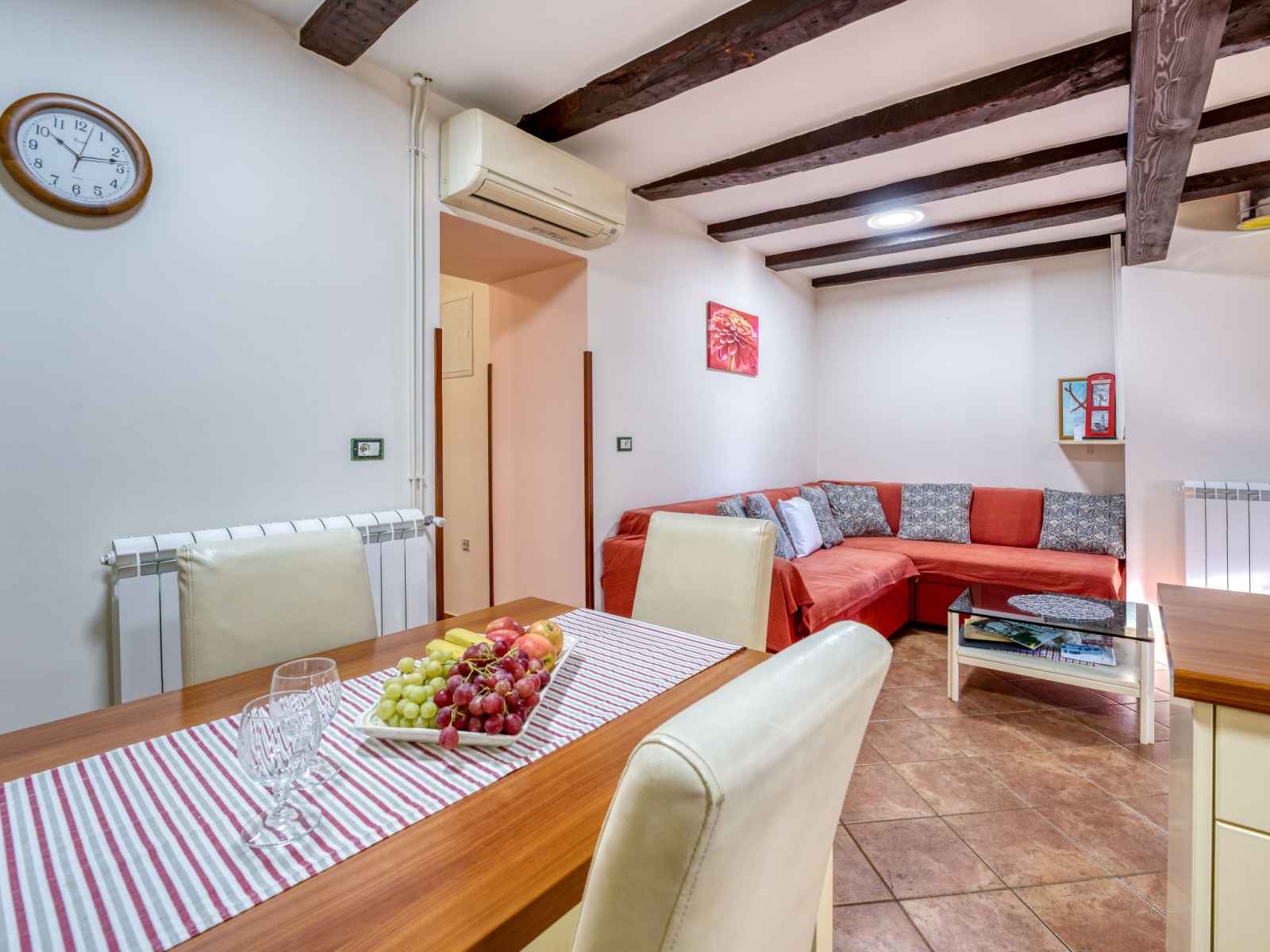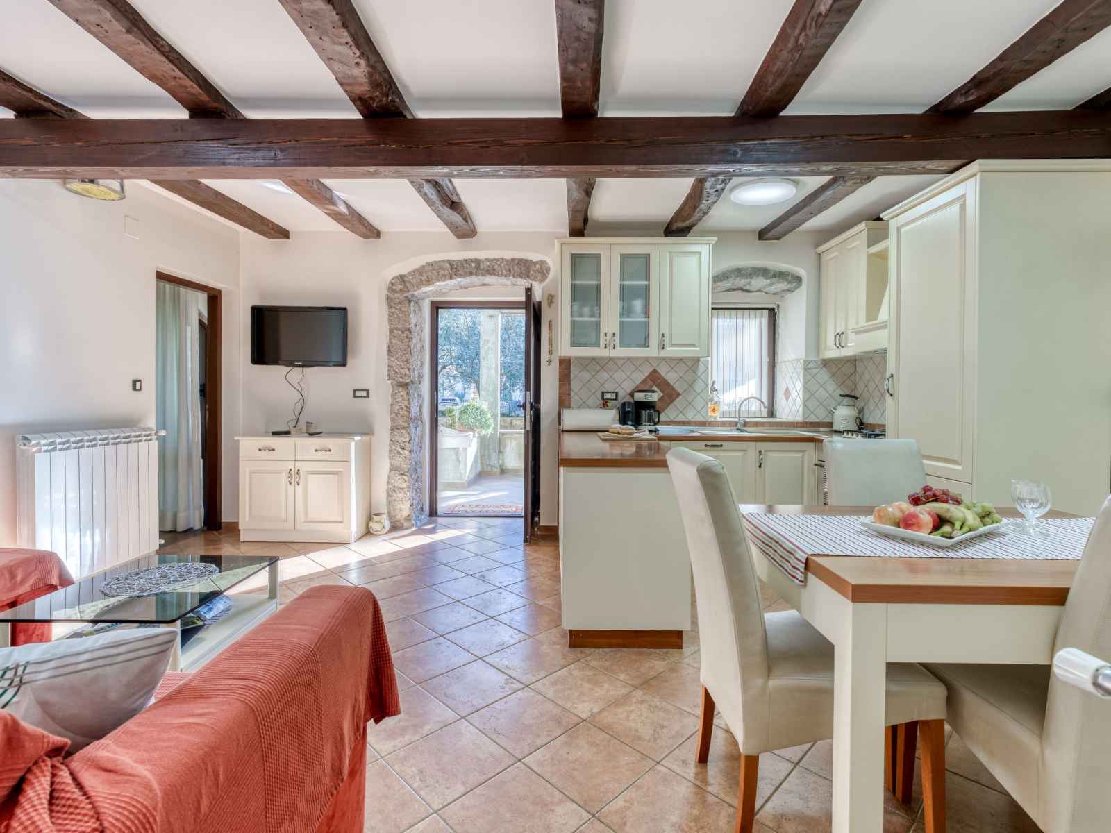 Apt 2 pièces 45 m2, au rez-de-chaussée. aménagement confortable: séjour/salle à manger avec 1 divan-lit (120 cm, longueur 210 cm), tv (satellite) (écran plat), air-conditionné. sortie sur la terrasse. 1 chambre avec 1 grand-lit (160 cm, longueur 200 cm). cuisine ouverte (four, lave-vaisselle, poêle à gaz, 4 feux, bouilloire électrique,