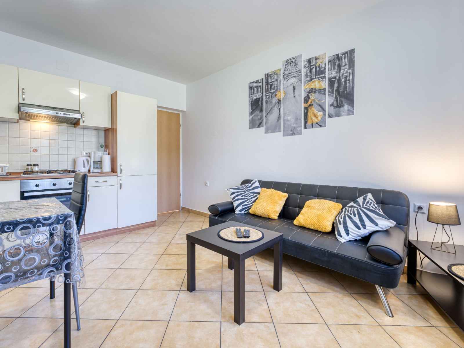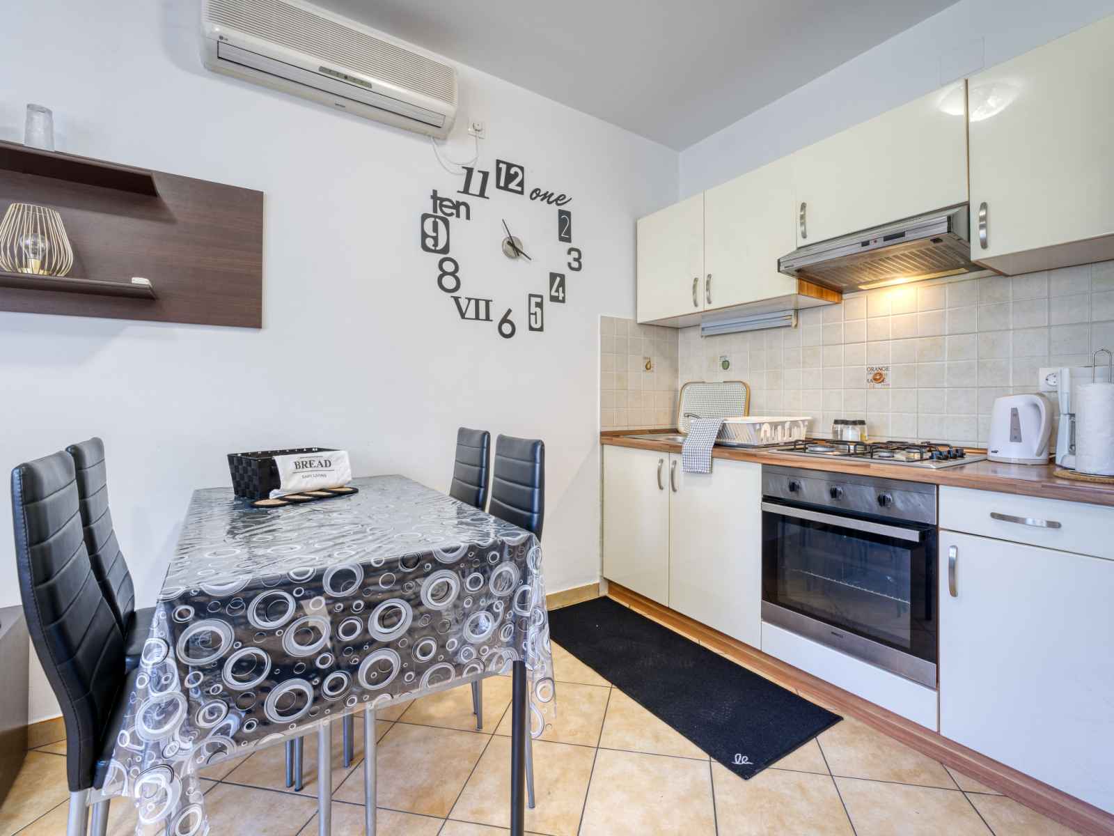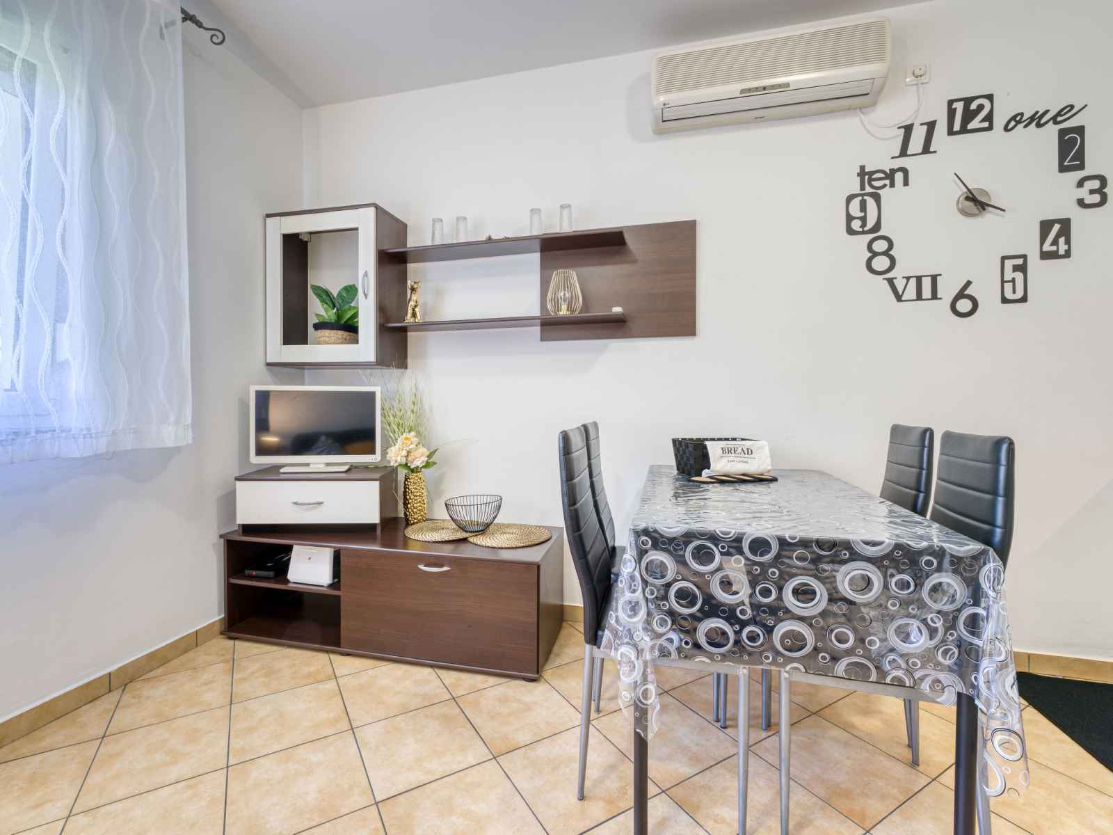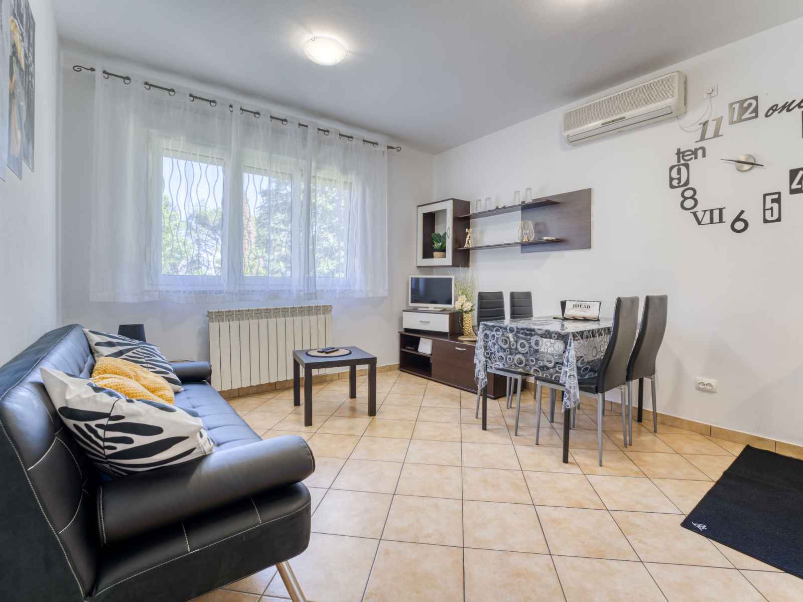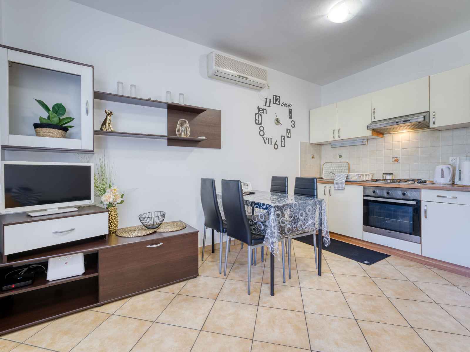 "san marco", apt 2 pièces 45 m2, au rez-de-chaussée. aménagement confortable: séjour/salle à manger avec tv (satellite) (écran plat), air-conditionné. 1 chambre avec 1 grand-lit (160 cm, longueur 200 cm). cuisine ouverte (1 plaque de cuisson, four, 3 feux, bouilloire électrique, cafetière électrique). douche, wc séparé. chauffage