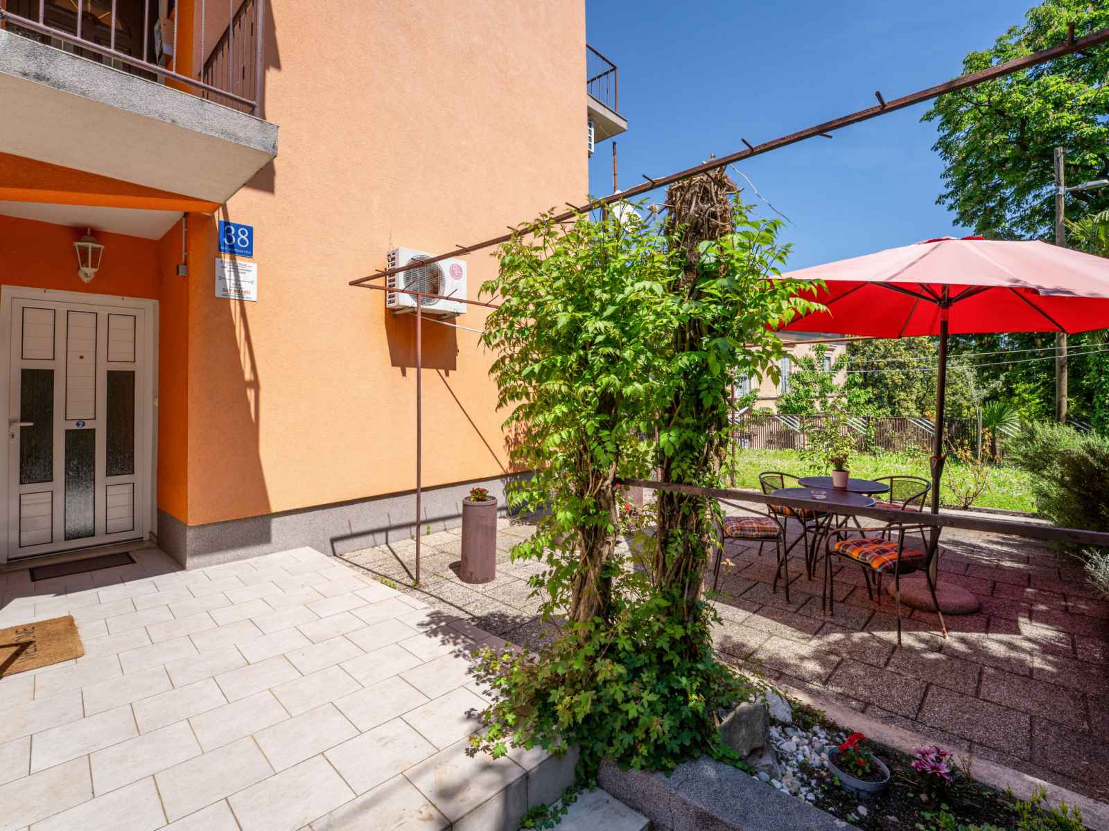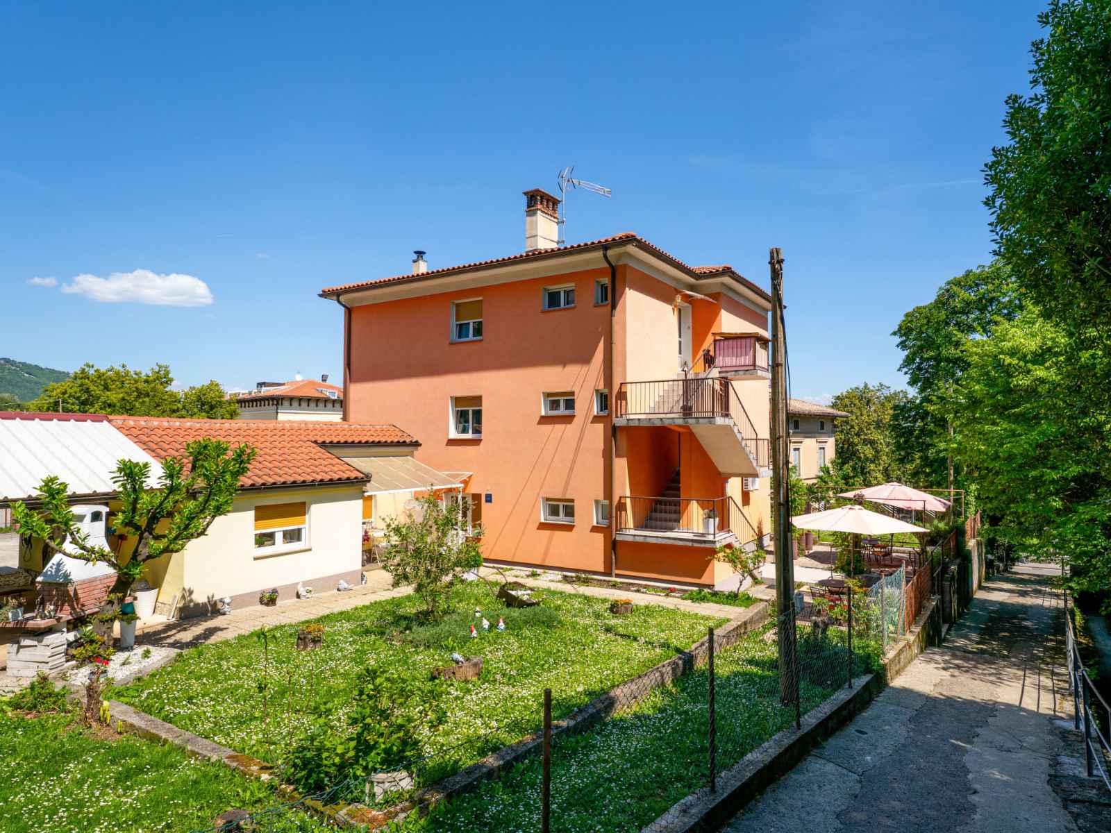 Belle maison à 2 apts. À 500 m du centre de lovran, situation ensoleillée, à 400 m de la mer, à 400 m de la plage. en commun: terrain 800 m2 avec pelouse et plantes. infrastructures de la maison: accès internet. place de parking près de la maison sur le terrain. supermarché 700 m, restaurant, bar 100 m, arrêt de bus 200 m, plage de