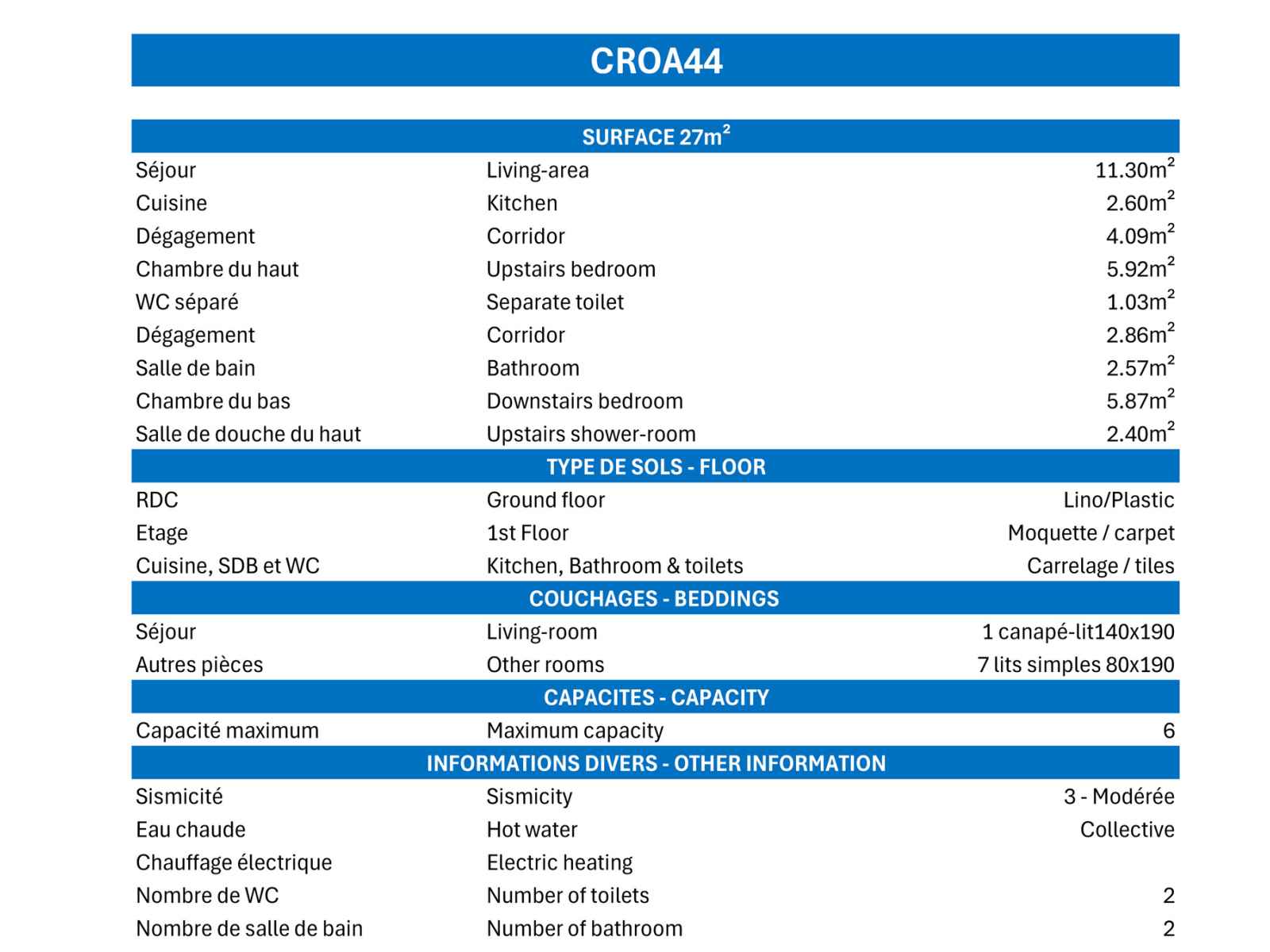 - Caution 350 € (CB ou chèque détruit au plus tard 14 jours après votre départ)