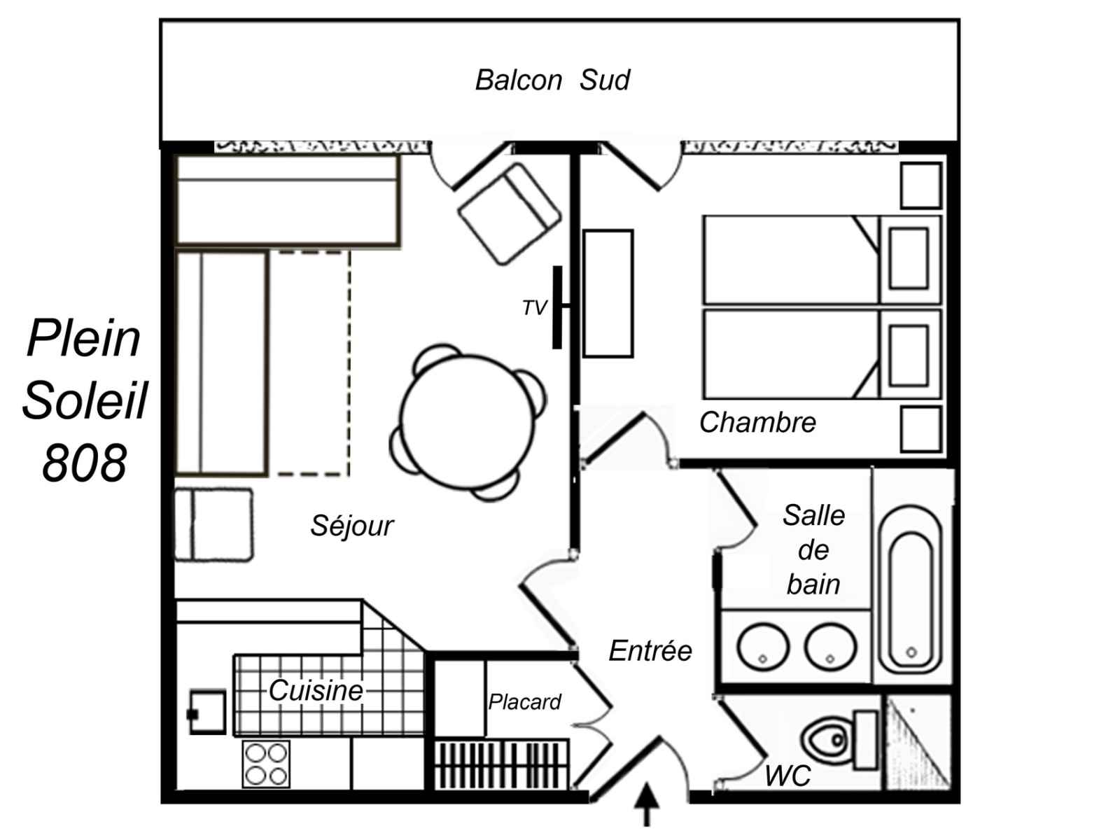 2 pièces, 5 personnes, 40m², balcon sud