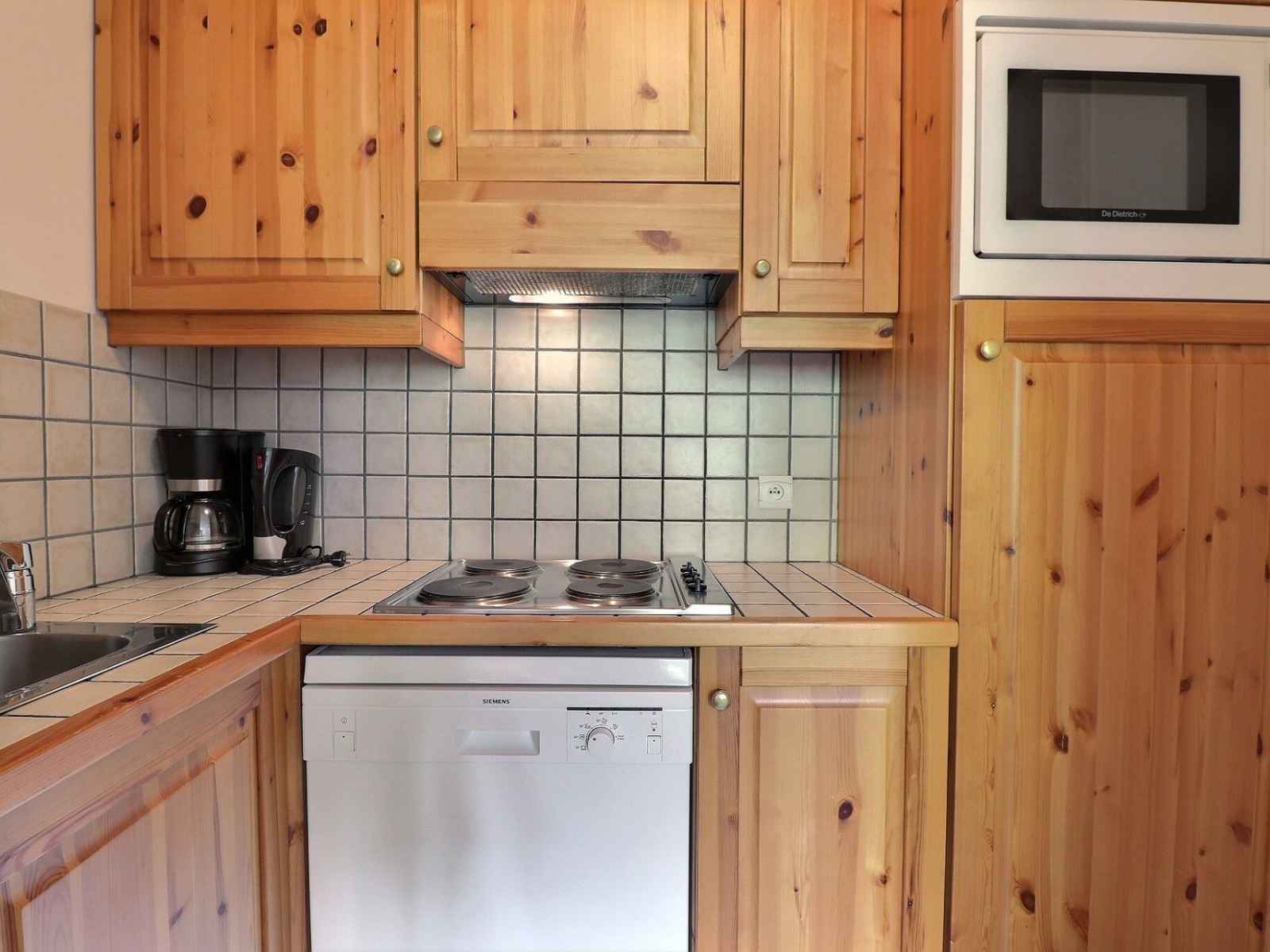 kitchenette : four combiné micro-ondes, frigidaire,
