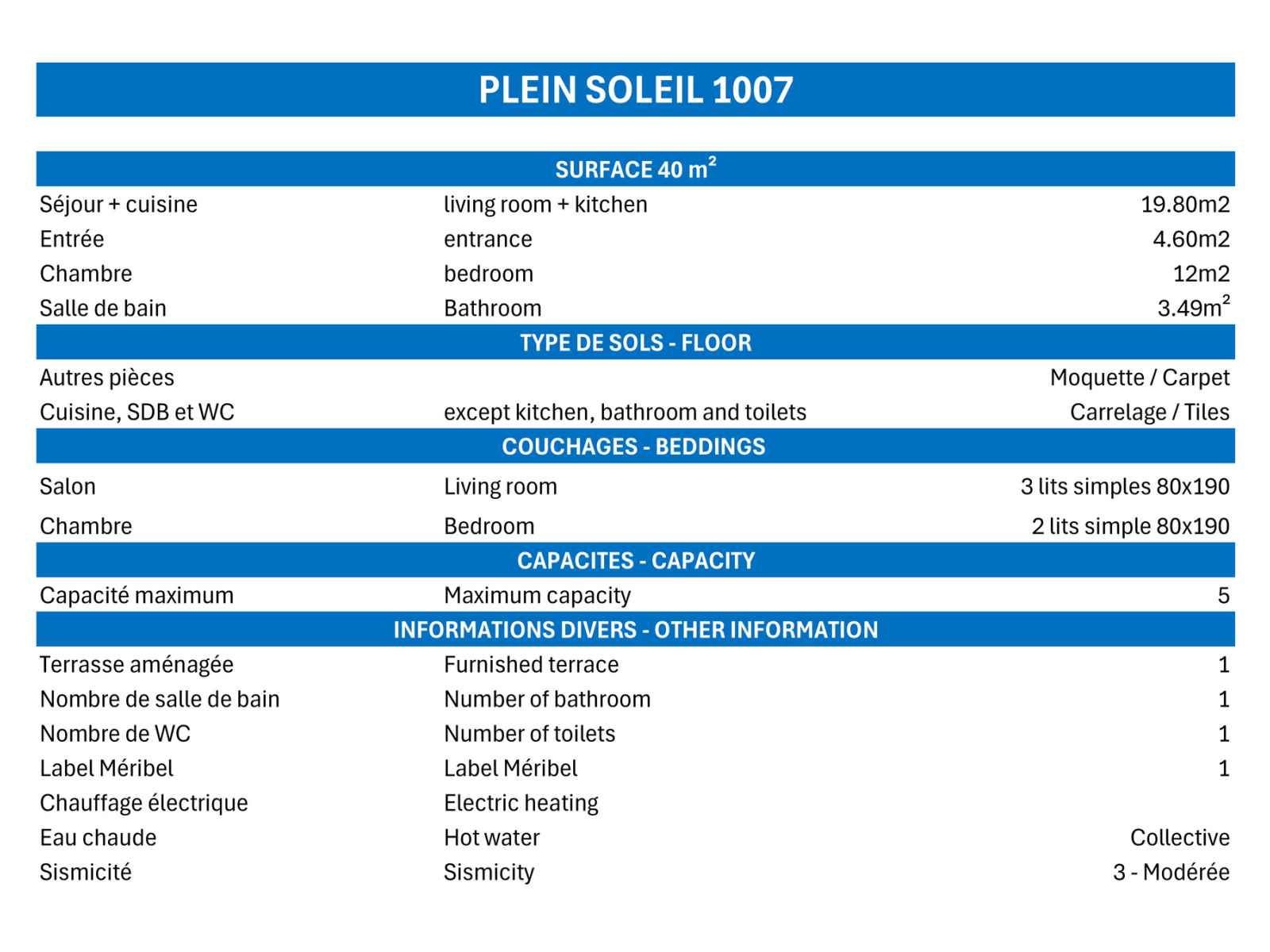 - Caution 350 € (CB ou chèque détruit au plus tard 14 jours après votre départ)