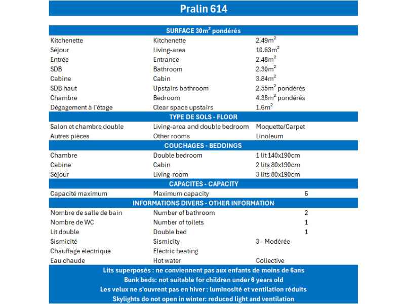- Caution 350 € (CB ou chèque détruit au plus tard 14 jours après votre départ)