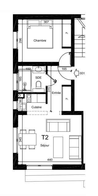 - Cuisine / séjour 18m² (Canapé lit (140x200))