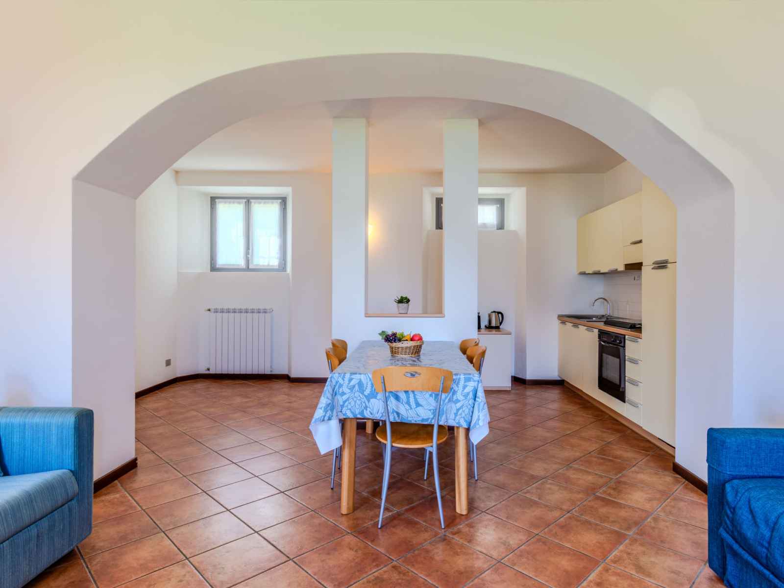 "vecchia filanda (mso150) apartment 301", apt 2 pièces 65 m2, au rez-de-chaussée. rénové, aménagement fonctionnel et confortable: séjour/chambre à coucher avec 1 divan-lit double, table pour les repas, tv (satellite) et ventilateur. sortie sur le jardin. 1 chambre avec 1 lit double. cuisine ouverte (four, lave-vaisselle, 4 feux,