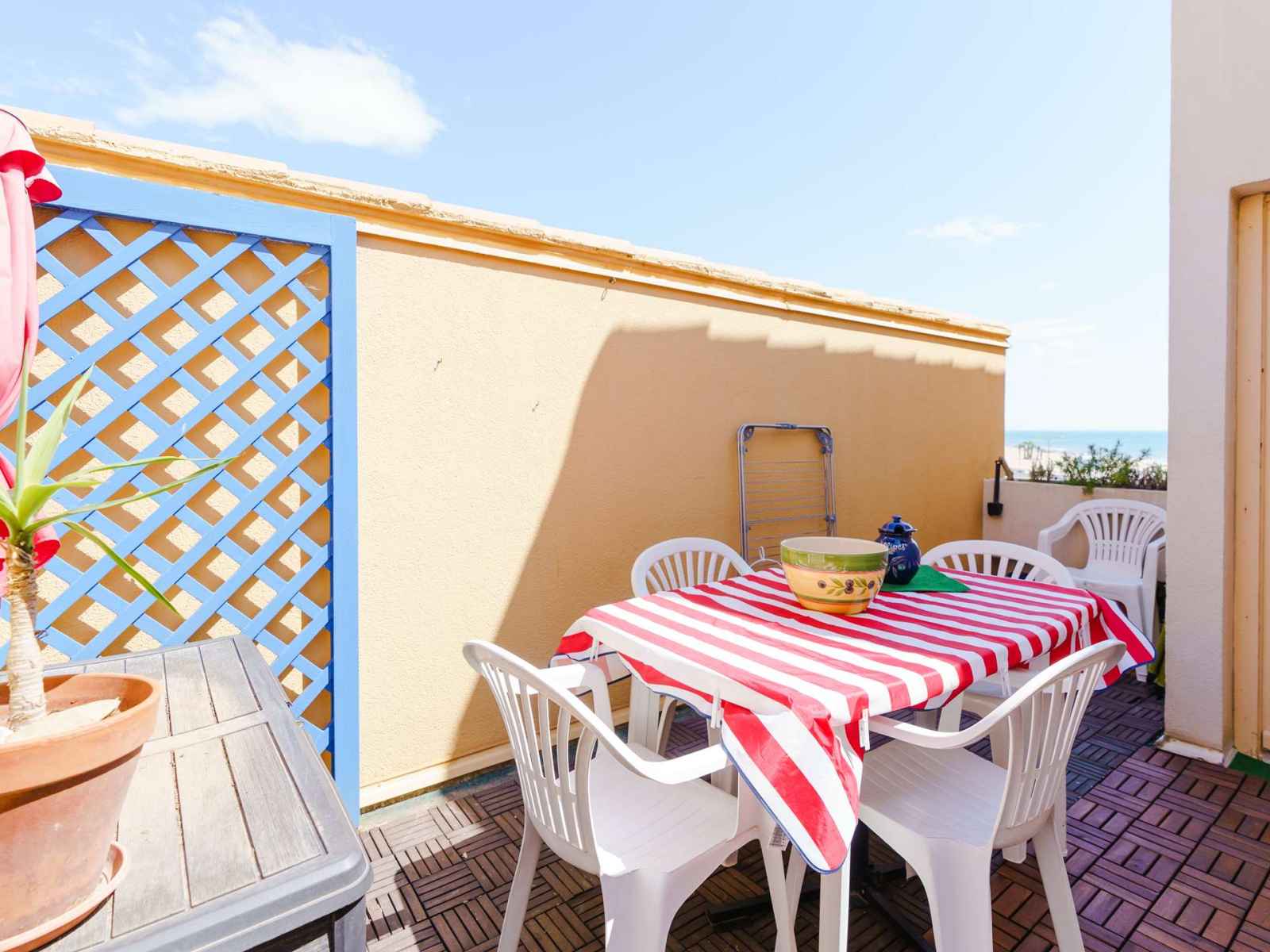 Appartement 2-pièces situé au 3ème et dernier étage. cour séparée vue mer et loggia avec salon de jardin avec magnifique vue panoramique sur la mer. capacité: 4 personnes. wifi. les animaux sont autorisés. logement non fumeur. parking privé de juillet à octobre - garage à vélos commun à la résidence, fermé à clé.