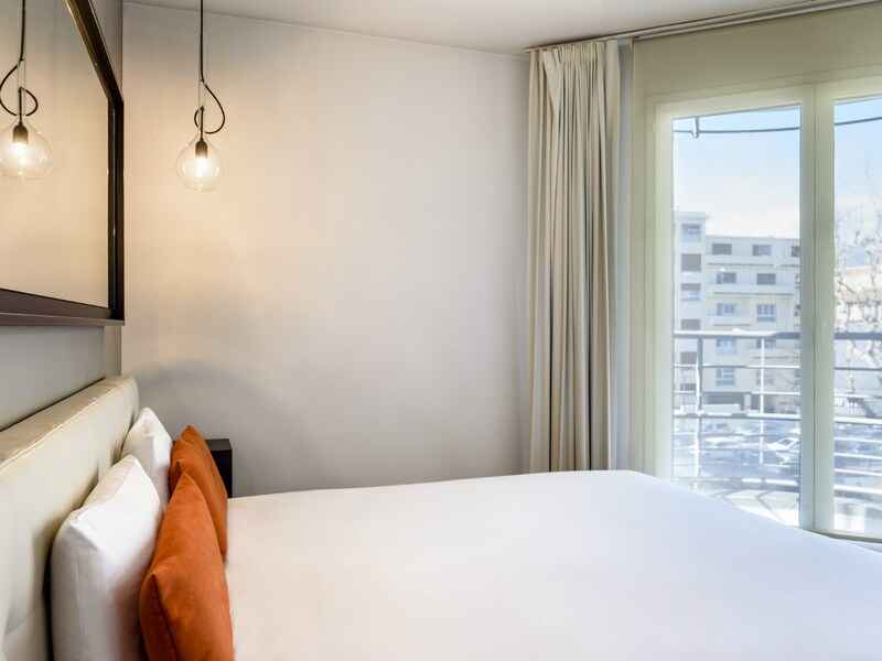 Location conforme au photo. Très bien situé avec un centre commercial juste en face. Très bien isolé pas un bruit une fois les fenêtre fermé. Je recommande vivement. Équipe également très sympathique.