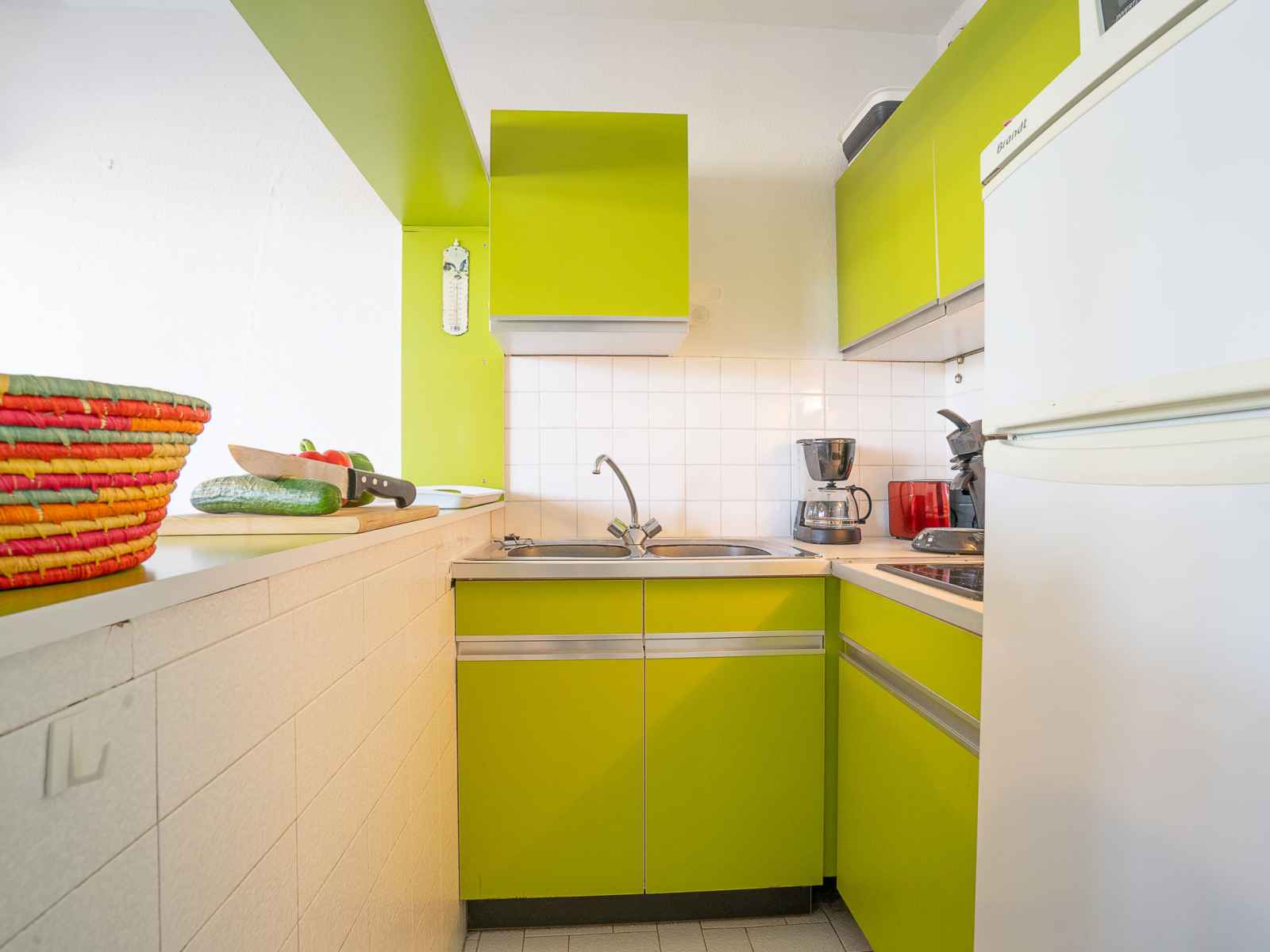Apt 2 pièces 30 m2 au 1er étage. séjour/salle à manger avec 1 divan-lit double (140 cm, longueur 160 cm), tv et air-conditionné. 1 chambre avec 1 grand-lit (140 cm, longueur 190 cm). coin cuisine (2 plaques vitrocéramiques, congélateur, combiné micro-ondes). salle de bains, wc séparé. chauffage électrique. terrasse 9 m2, situation est.