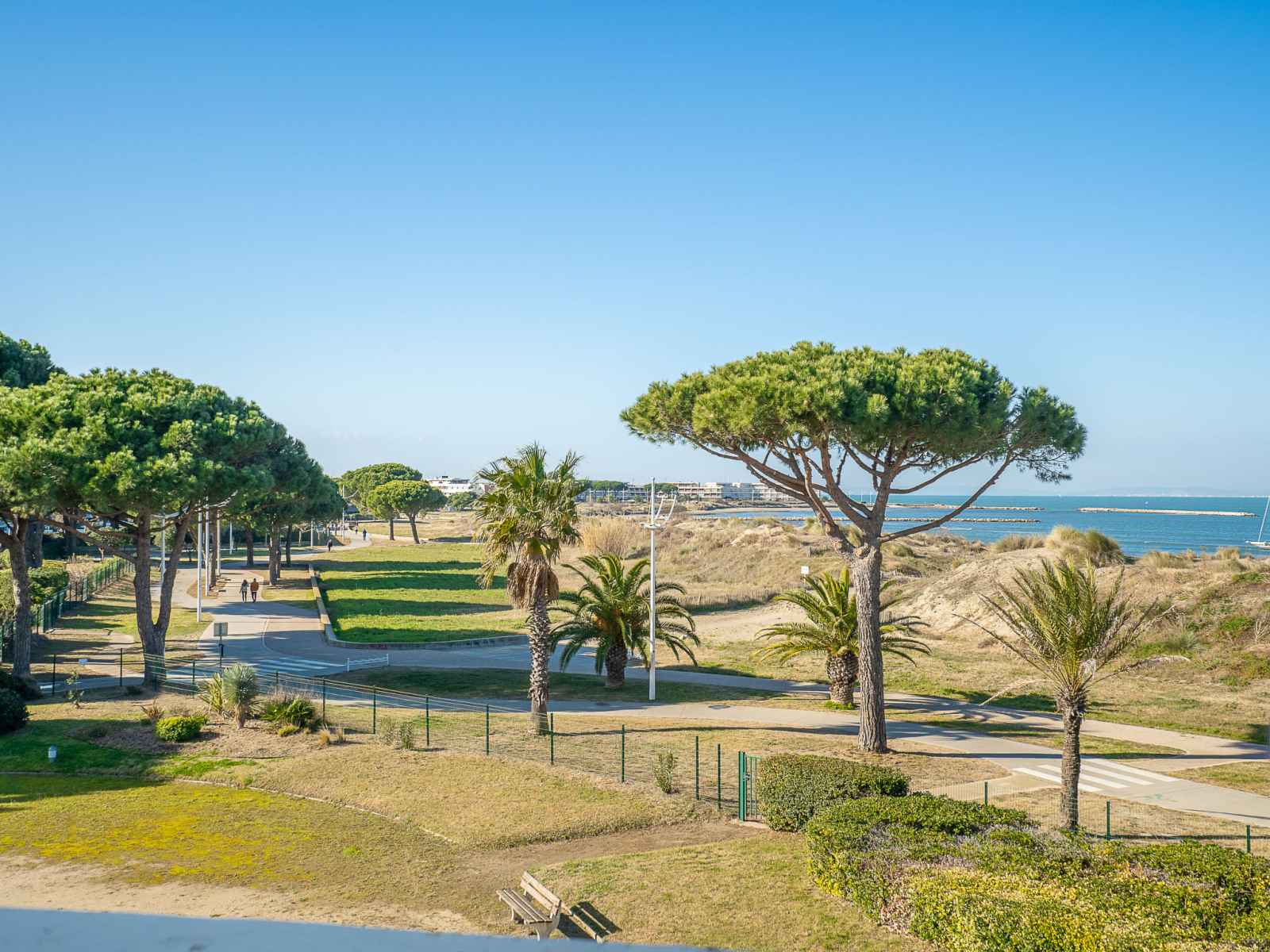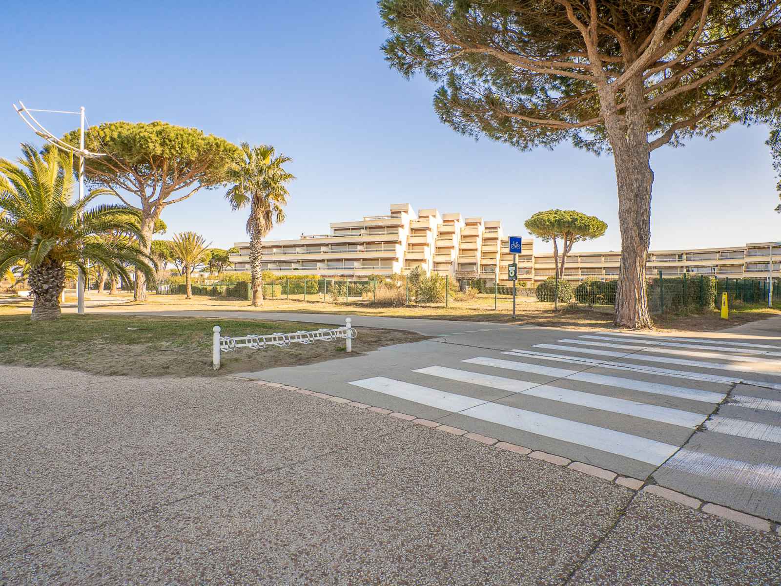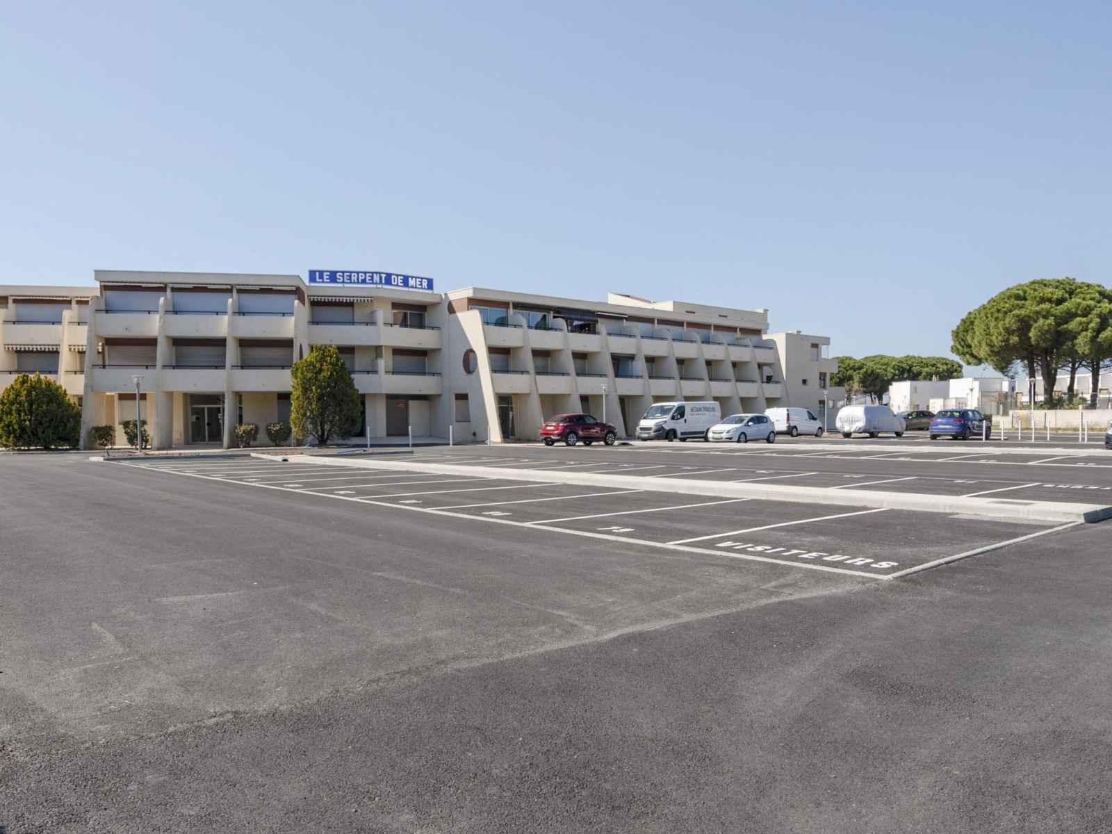 Résidence "le serpent de mer". dans le quartier de la plage nord, à 100 m de la mer, à 50 m de la plage. magasins, magasin d'alimentation 450 m, centre commercial 500 m, restaurant 450 m, arrêt de bus 400 m, gare ferroviaire 2 km, plage de sable 50 m, piscine couverte 1.5 km, centre thermal "thalazur les bains de camargue" 3.5 km. port