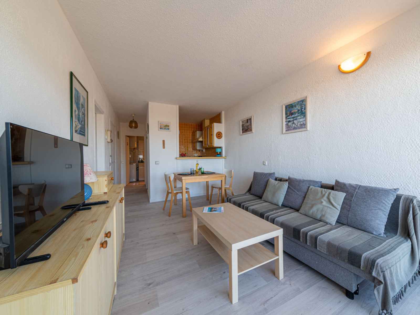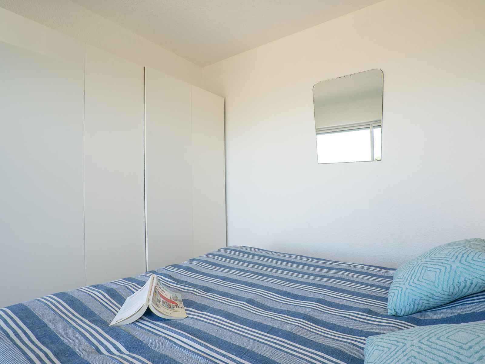 Apt 2 pièces 36 m2 au 2ème étage. séjour/salle à manger avec 1 divan-lit double (1 x 130 cm, longueur 190 cm), tv et air-conditionné. 1 chambre avec 1 grand-lit (160 cm, longueur 200 cm). sortie sur la terrasse. (3 plaques à induction, micro-ondes, congélateur). douche, wc séparé. terrasse 15 m2, situation ouest. meubles de terrasse.
